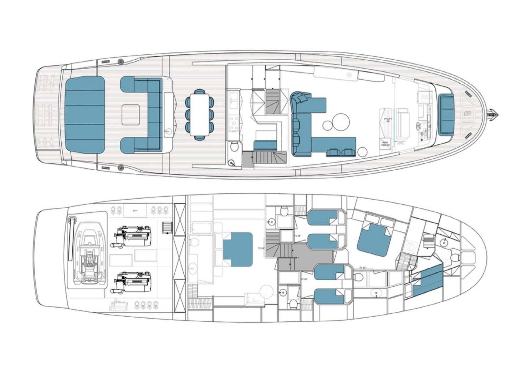- Zero speed stabilisers to reduce any rolling motion while at anchor