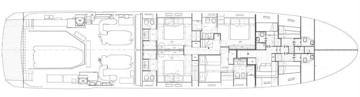 Your guests are treated to a choice of three fabulous lower-deck double VIP suites and a twin-berth suite featuring an additional pullman berth. The twin cabin is ideal for children. For those without kids, this space can be converted into a massage room. Mirrors and large hull windows in all suites combine to create a light stylish and spacious feel to these already spacious suites. All guest suites have beautiful en suite facilities and benefit from the same contemporary feel found throughout MARY.