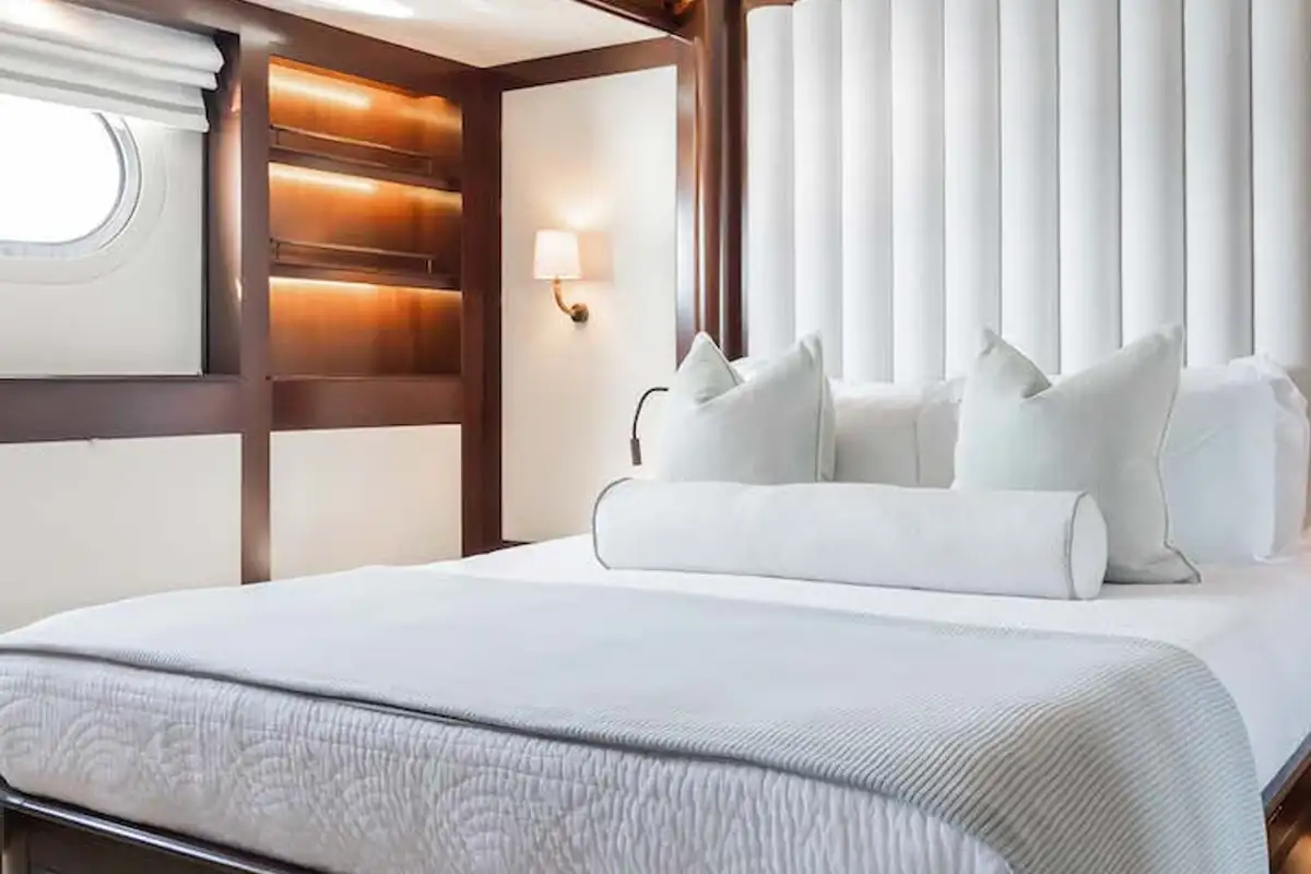 The other four guest cabins are all on the lower deck – two VIP doubles with queen size island beds and two twins, one of which has an extra pullman bunk.
