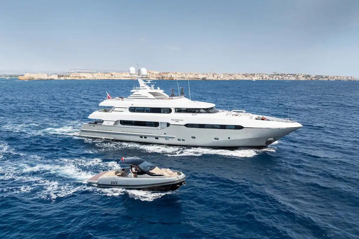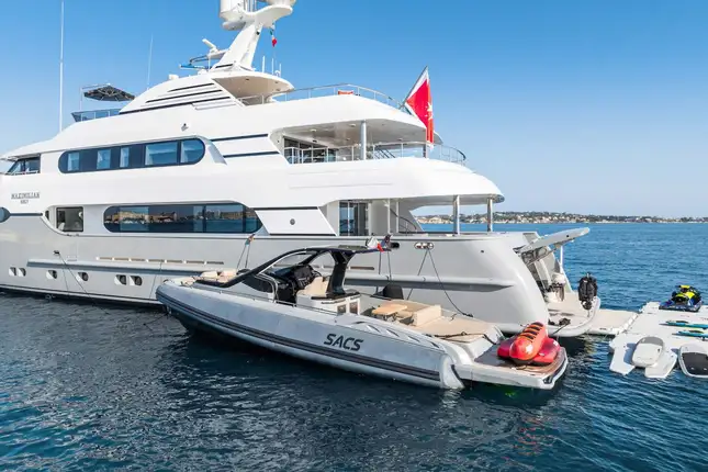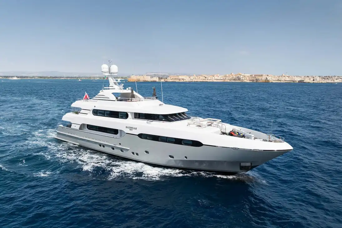 An excellent choice for your next yachting holiday, MAXIMILIAN MMIV is a distinctive 45m (148ft) yacht with spacious tri-deck accommodation – and she comes with an extensive fleet of tenders and toys. Designed to host up to 11 guests on board in a five-cabin layout, her master suite includes a separate annexe with extra beds for children and she carries a crew of nine.