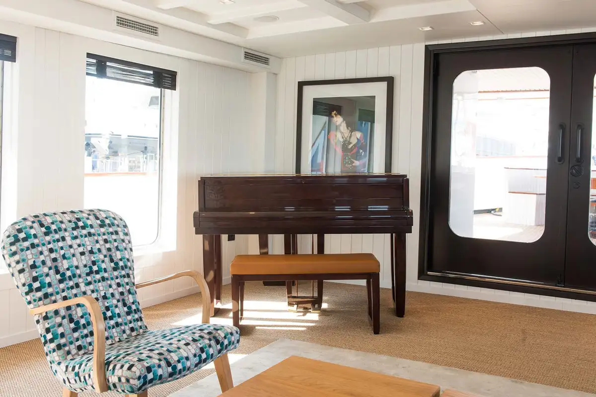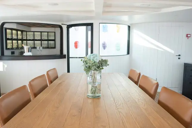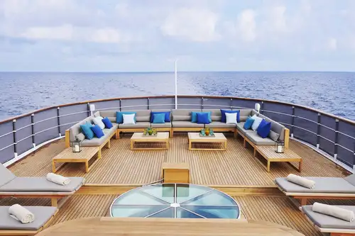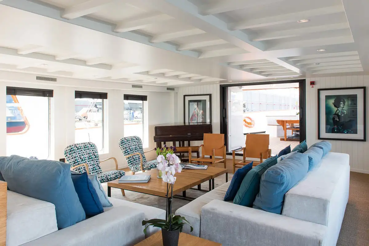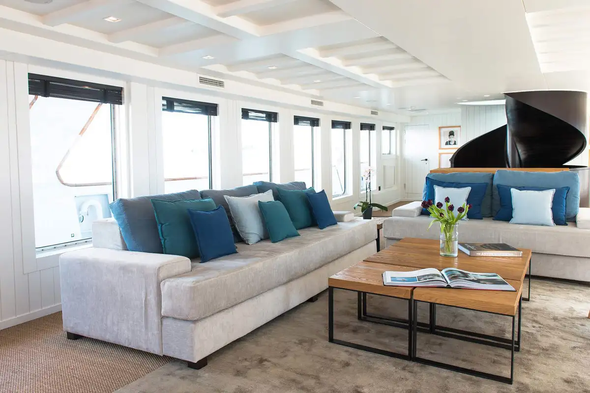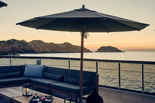 There are three dining spots aboard – aft on the main and upper decks, and a magnificent dining room also on the upper deck. This dining room is glazed to offer 180 degree views astern. After an exhilarating day, you’re ready for a cocktail at the bar, and then dinner - book-ending your day surrounded by happy family and friends.