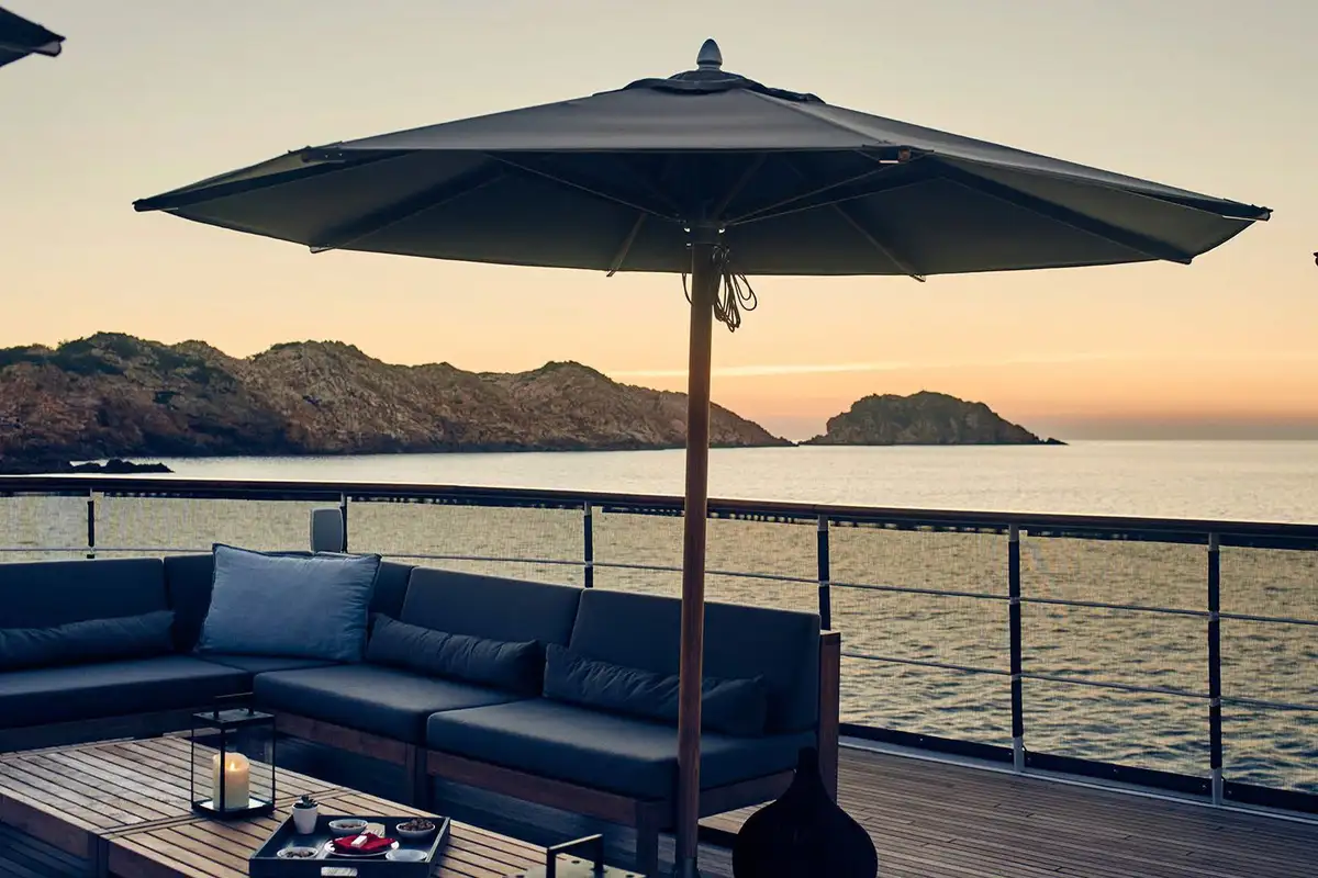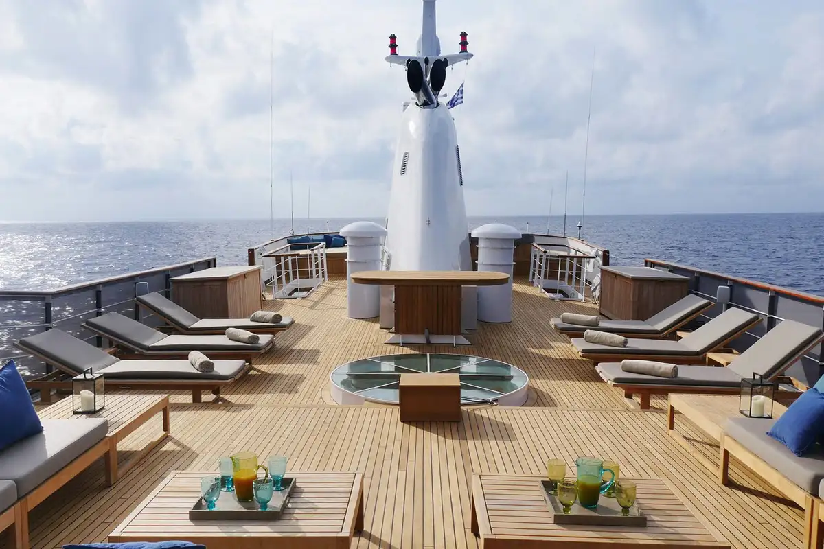 The main aft deck opens off the stylish lounge, and here you’ll find a generous al fresco dining arrangement to fit all 12 guests. The hands-on crew will soon fill your breakfast order with fresh hot breads and pastries, baked just metres away in the professional galley. Don’t forget to savour the local fruits as well.
