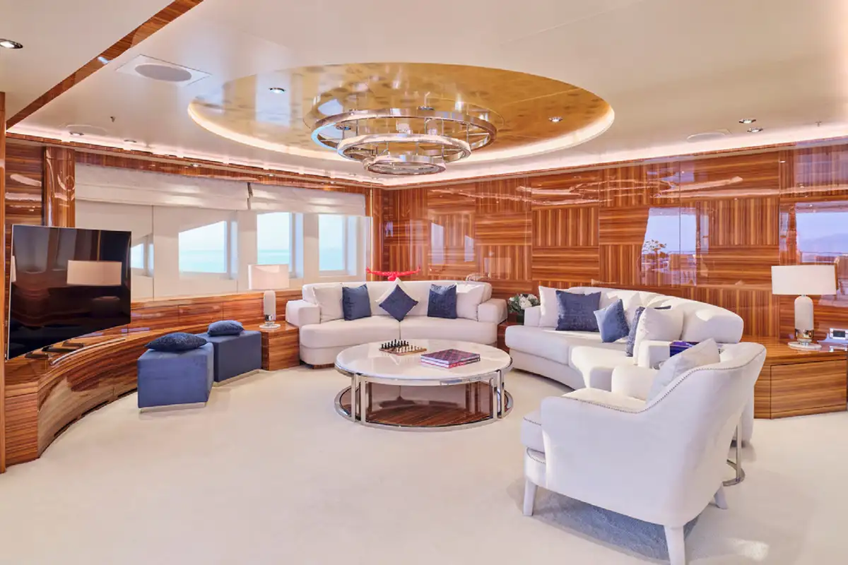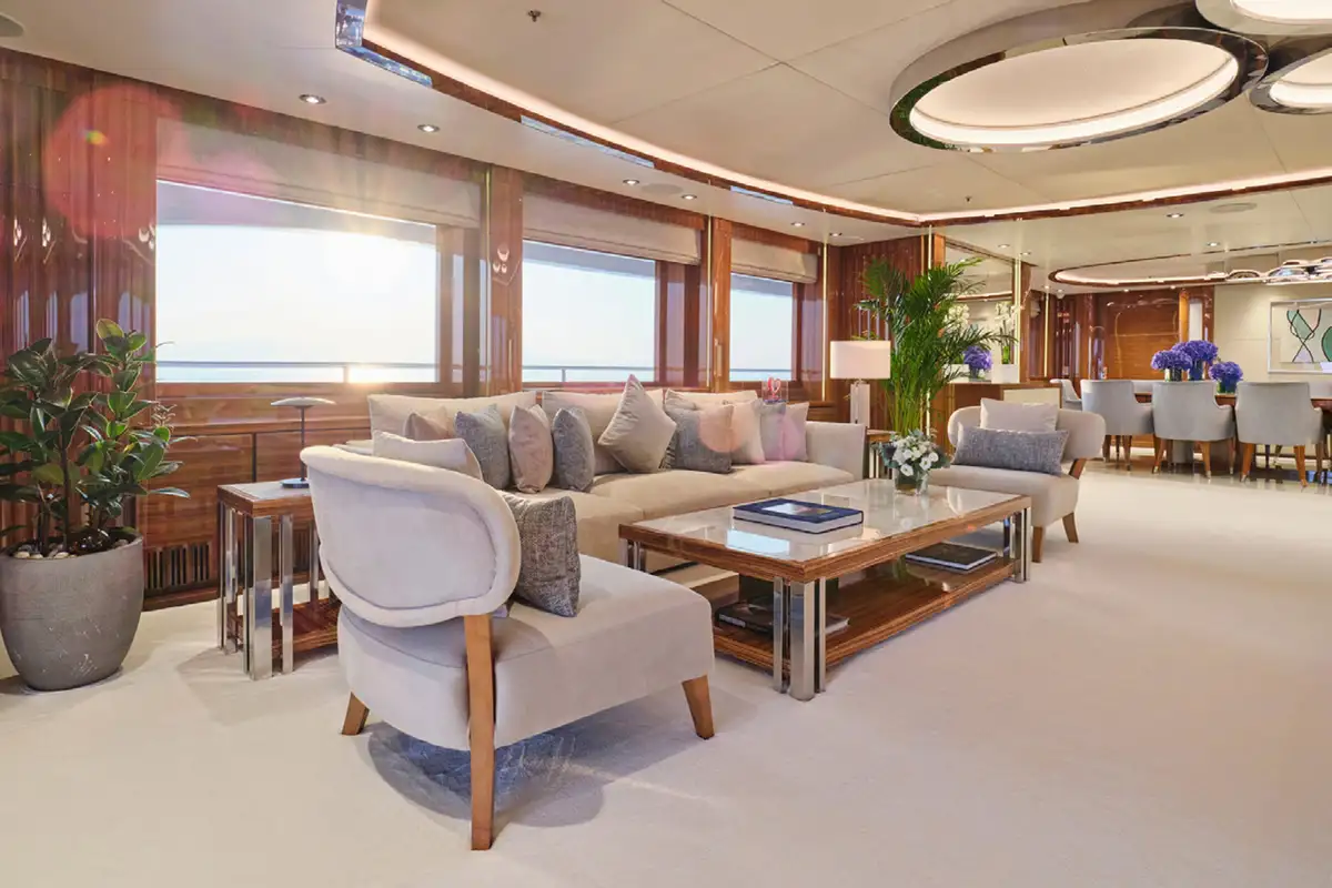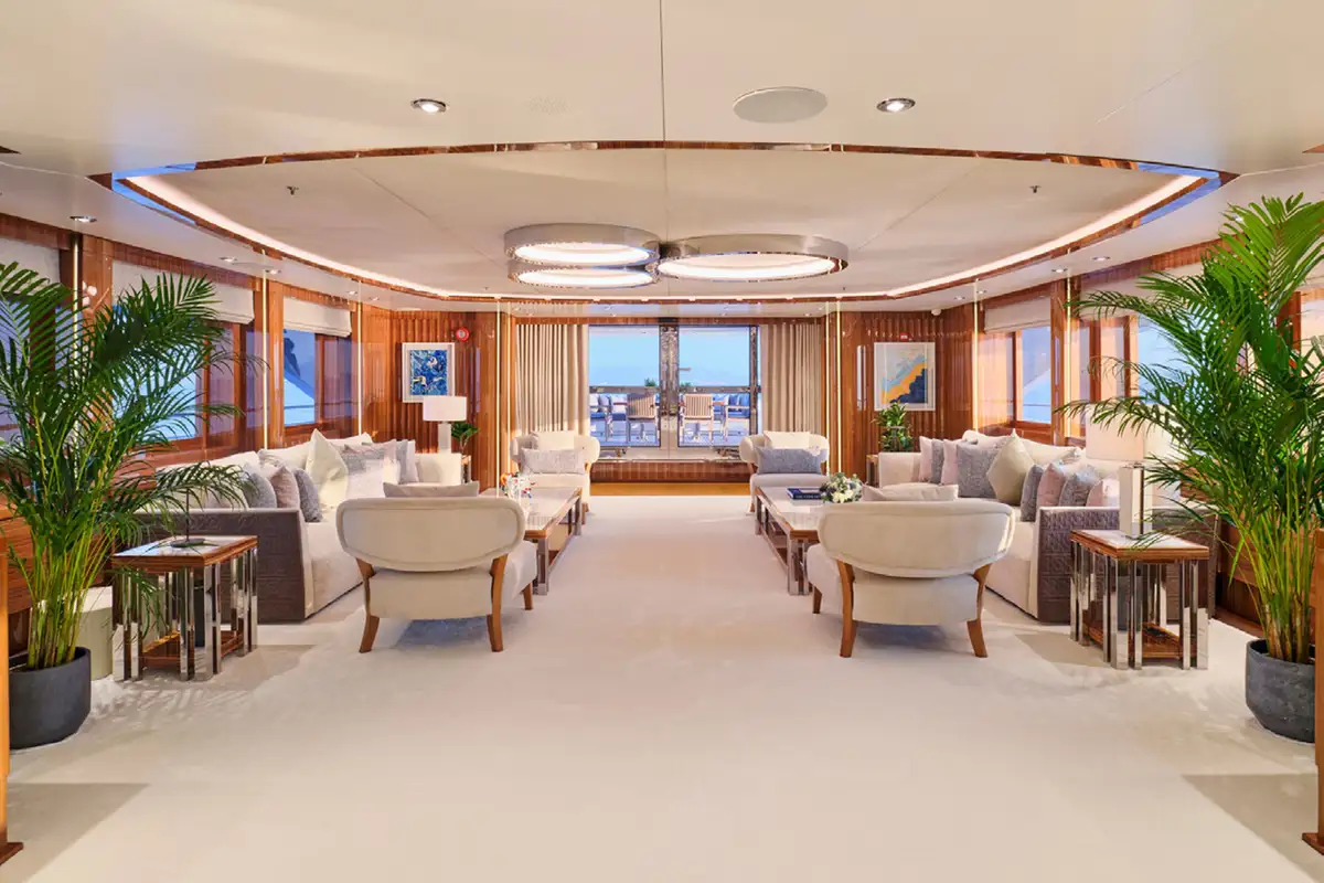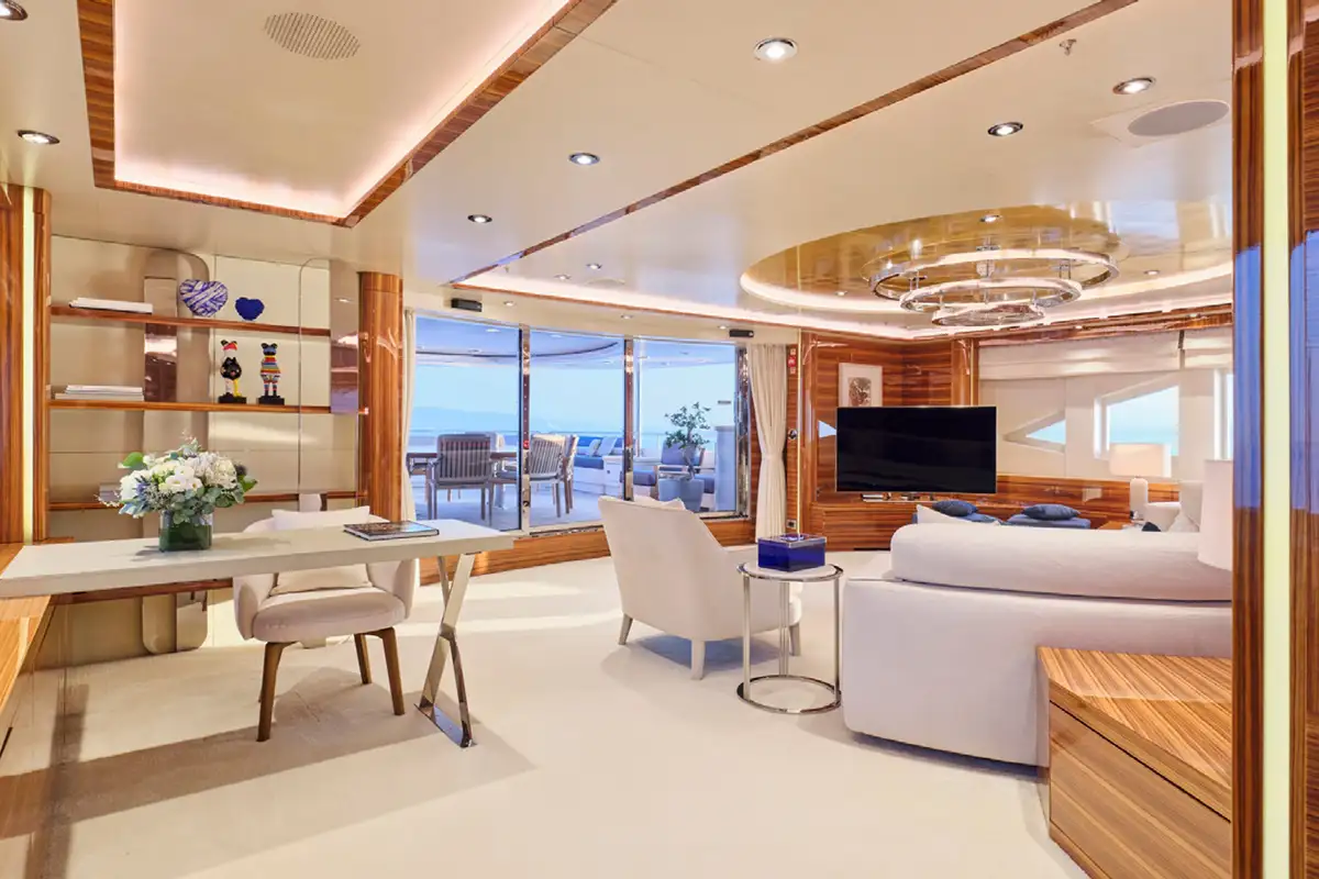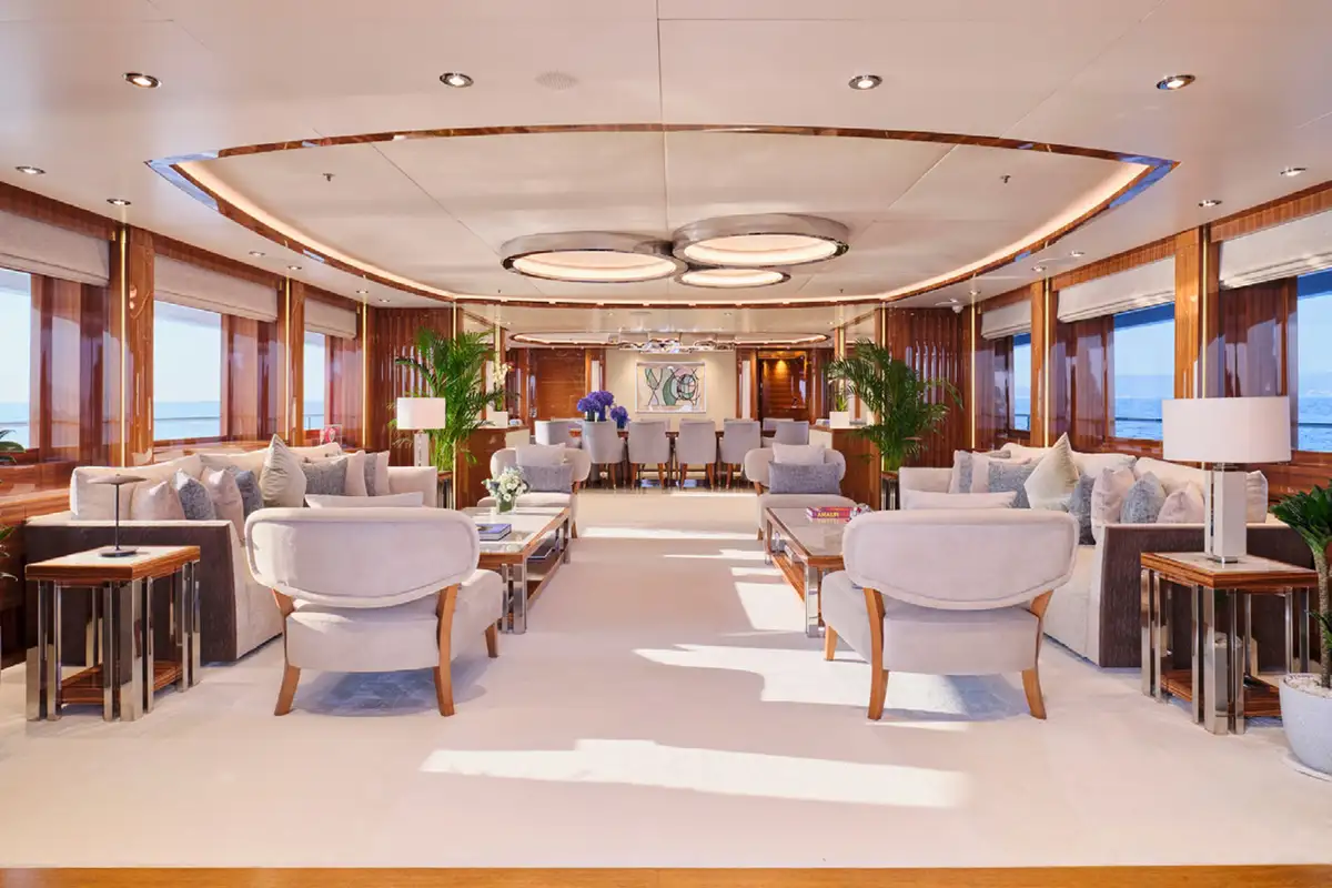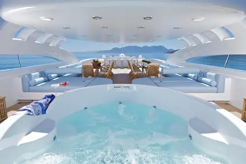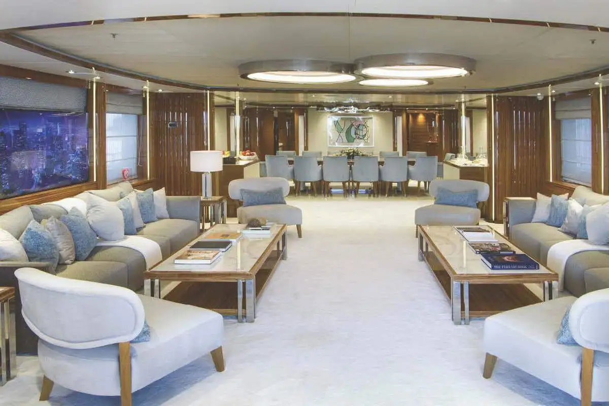 Following an afternoon of relaxation it’s time to burn more energy, perhaps with a quick visit to the on board gym or simply head straight into party mode with sundowner cocktails. A delicious dinner is served, perhaps this time in the formal dining saloon, before a nightcap or a private party on board. However you wish to finish off your first day on board, rest assured MIA RAMA’s stylish accommodation will not disappoint. Beautifully presented thanks to an interior update in 2014 right up to 2019, she welcomes 12 guests to a main deck master suite, three VIP cabins and three twin cabins across the main, lower and upper decks. Combined, they provide the ultimate haven for large families or groups of friends chartering this fabulous superyacht.