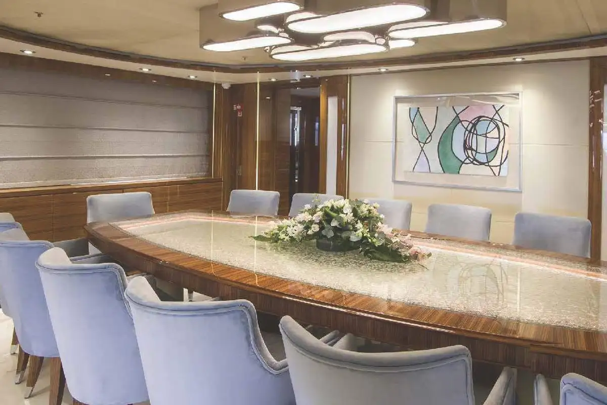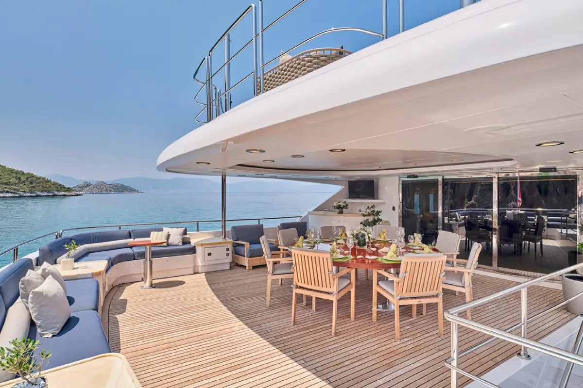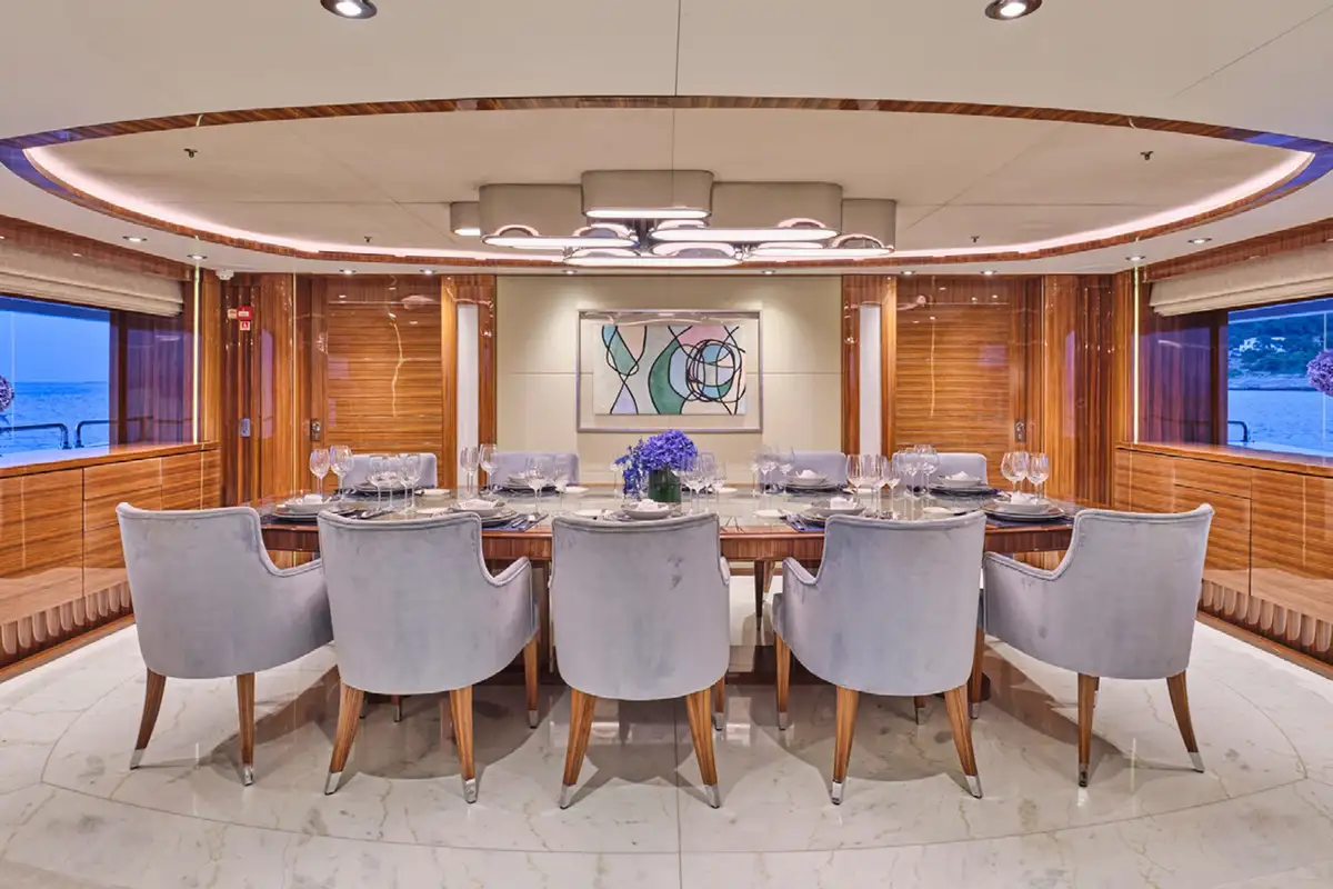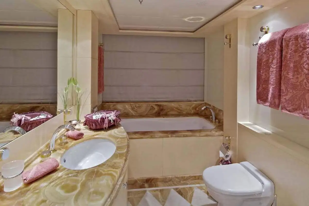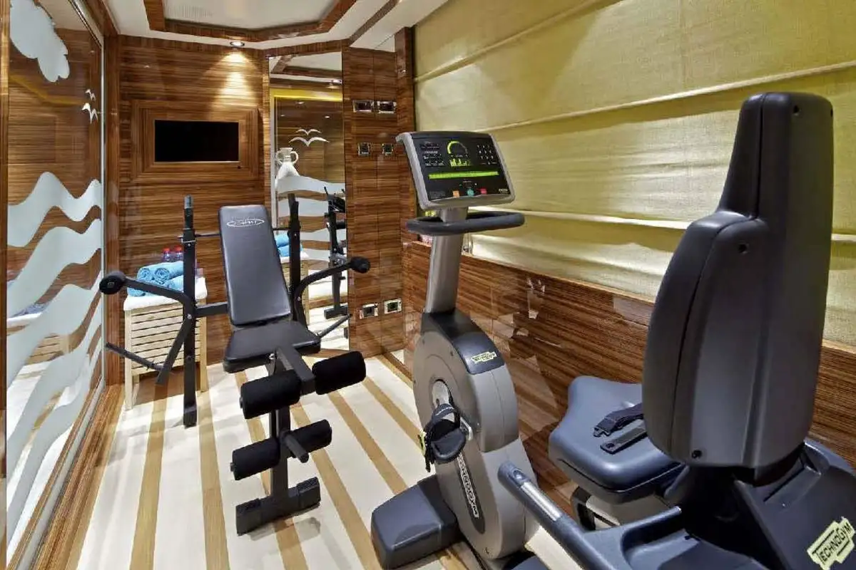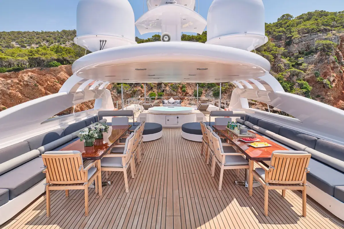 Following an afternoon of relaxation it’s time to burn more energy, perhaps with a quick visit to the on board gym or simply head straight into party mode with sundowner cocktails. A delicious dinner is served, perhaps this time in the formal dining saloon, before a nightcap or a private party on board. However you wish to finish off your first day on board, rest assured MIA RAMA’s stylish accommodation will not disappoint. Beautifully presented thanks to an interior update in 2014 right up to 2019, she welcomes 12 guests to a main deck master suite, three VIP cabins and three twin cabins across the main, lower and upper decks. Combined, they provide the ultimate haven for large families or groups of friends chartering this fabulous superyacht.