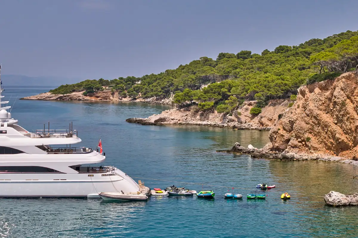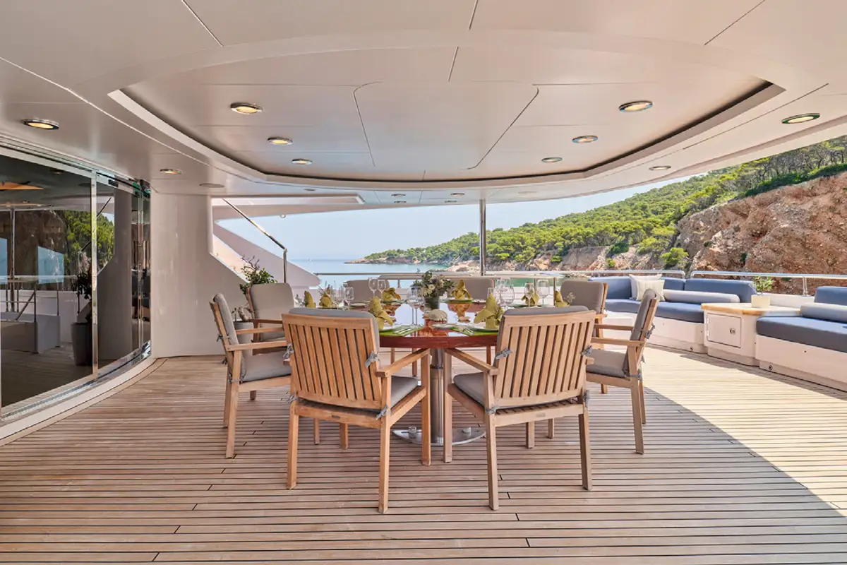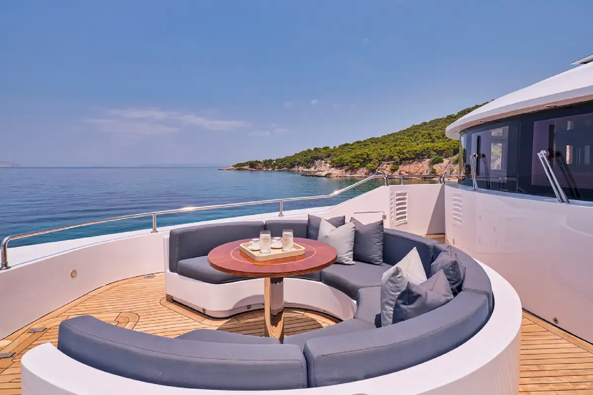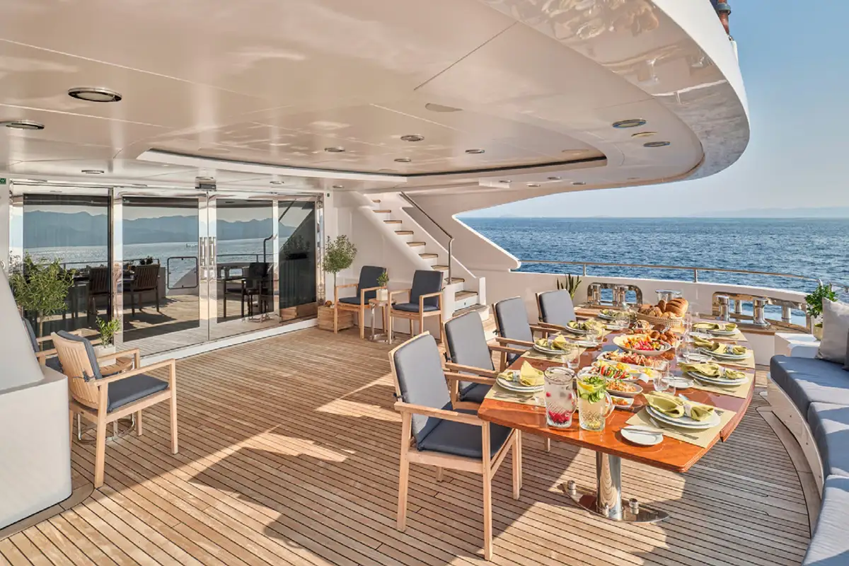 Start the day with breakfast on the main deck where a casual al fresco dining area will have been set up by MIA RAMA’s attentive crew. Fuelled and ready for the day ahead, some guests may choose to enjoy the convivial sun deck, where the sit-up bar has great views of the anchorage, others might prefer to head down to the swim platform for a morning of watersports. As well as jetskis, inflatables and stand up paddleboards, her flyboards, wakeboards and towables provide hours of fun on and in the water.