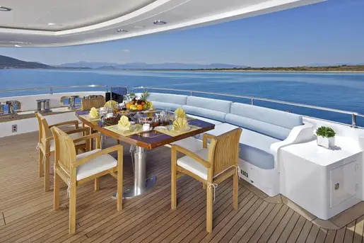 Combining the talents of Golden Yachts with Studio Giorgio Vafiadis, the 53.5m (175.6ft) MIA RAMA was launched in 2010. Built with the charterer in mind, she has become one of the finest charter yachts on the market thanks to her stylish sit-up bar, vast inventory of watertoys, superb al fresco entertainment areas and talented crew.
