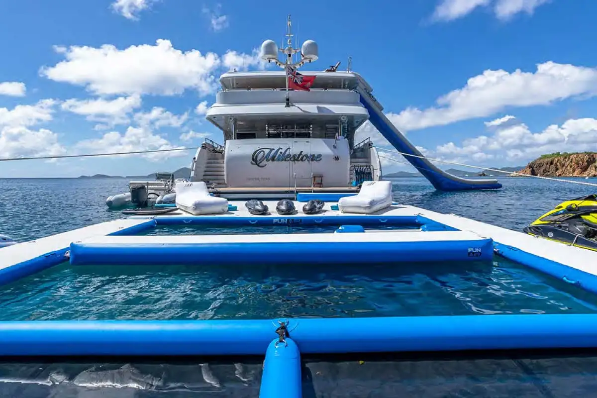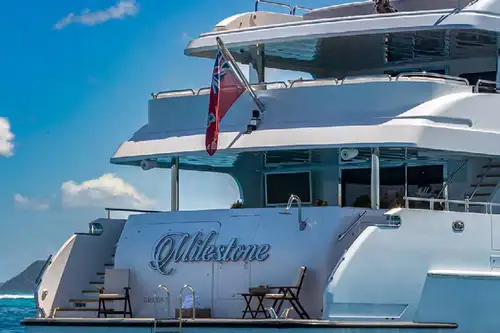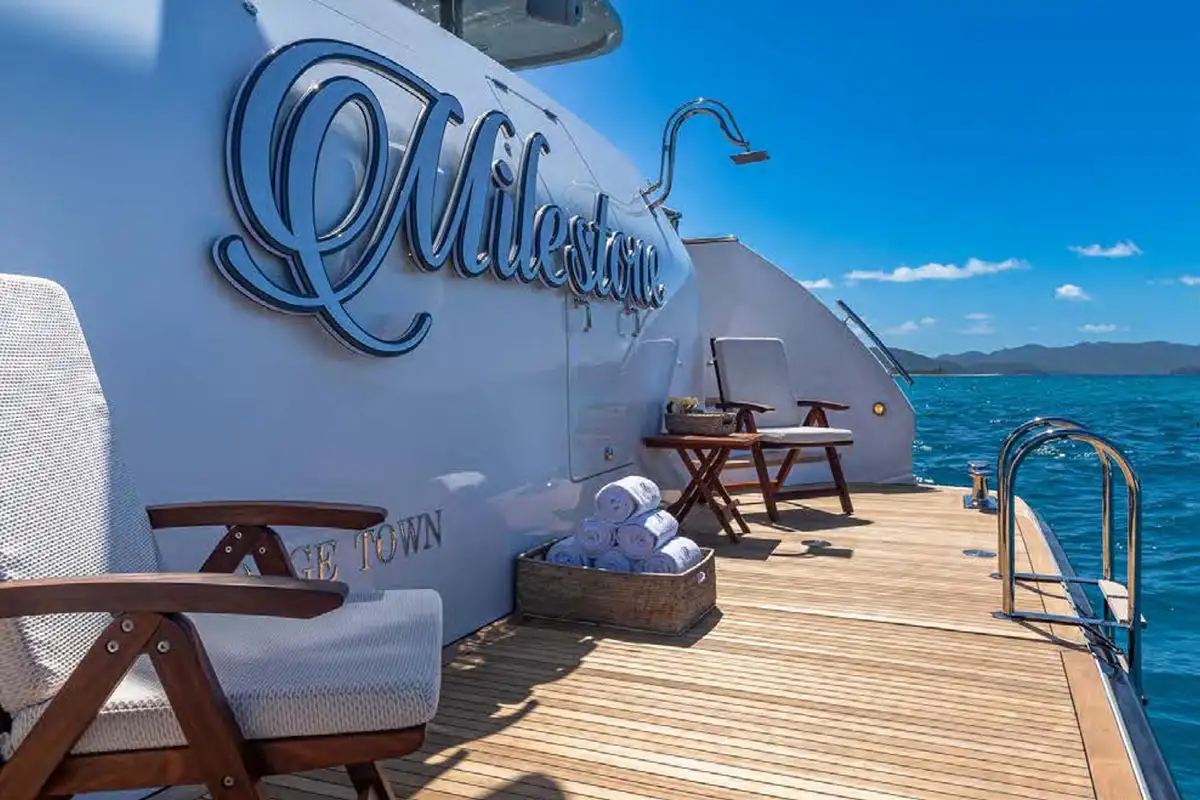 If you dream of sailing in azure waters in a yacht designed for all the family, then MILESTONE is your charter choice. With guest accommodation over four decks and an elevator giving access for all, this custom yacht offers your party of 12 plenty of in-and-outdoor living space, masses of watertoys to entertain the adrenaline junkies including kite surfing and e-foils, plus a swim-up bar in the jacuzzi.