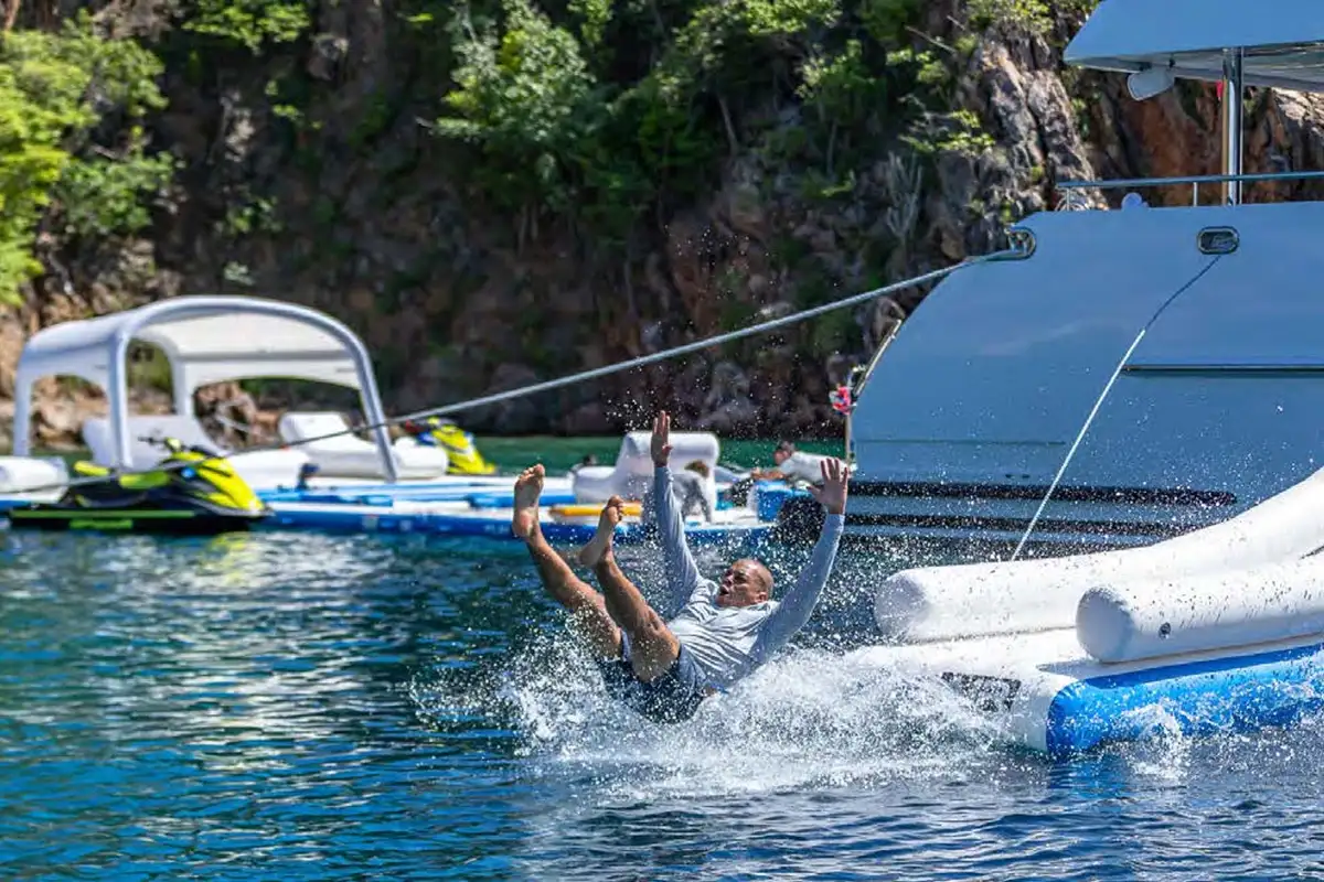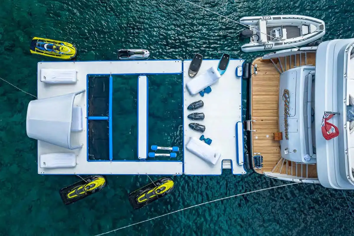 Astern, the crew have the beach club and watertoys ready. The little ones want to the ride the towable banana, the bigger children have so much to choose from that it will take the whole holiday to try it all. Maybe start with the jetskis, or does the flyboard tempt you?