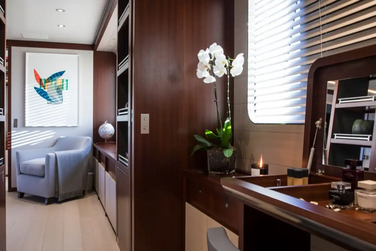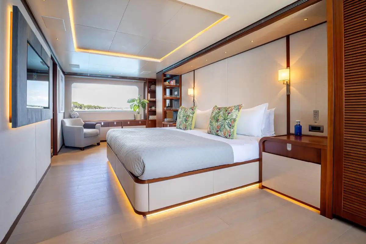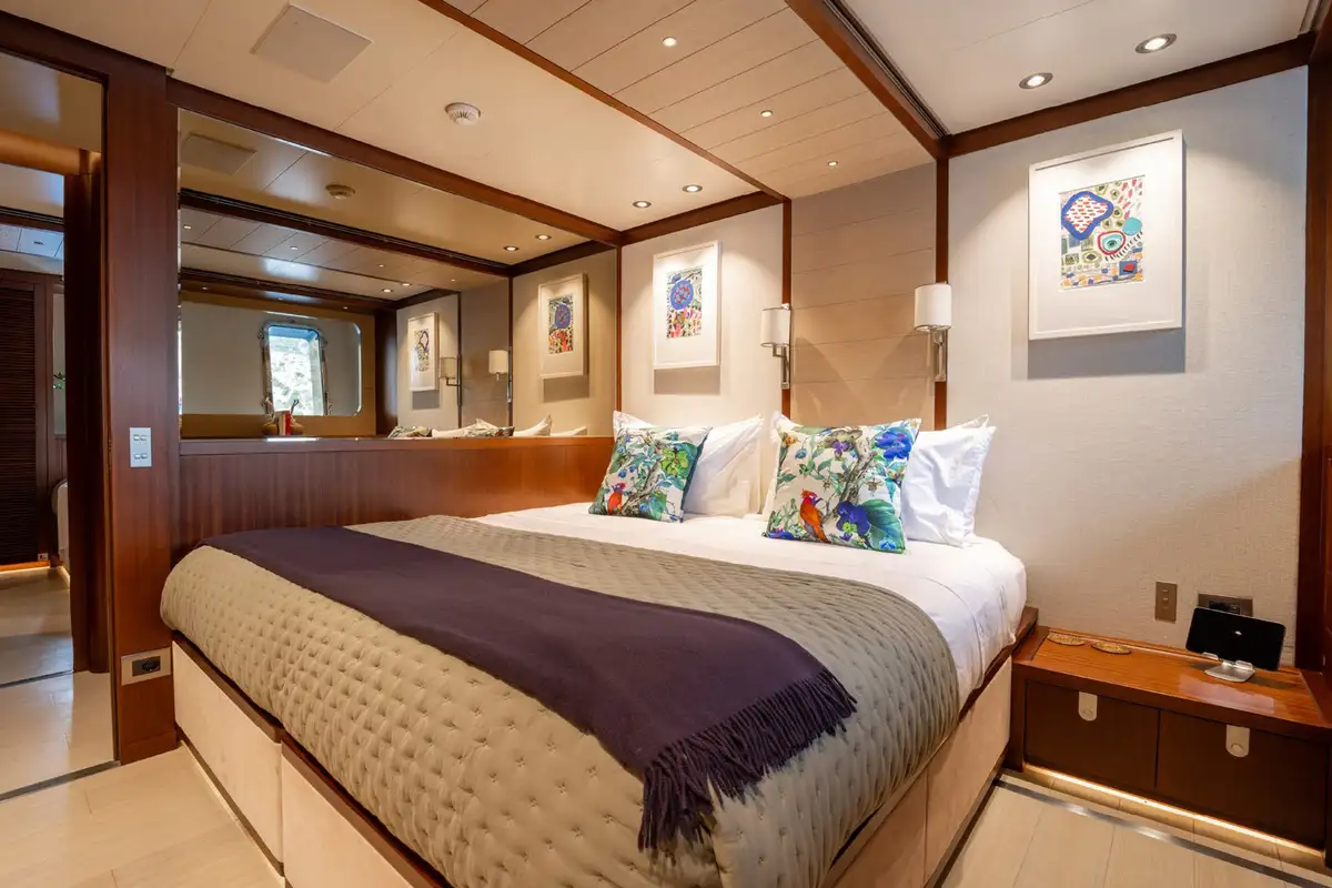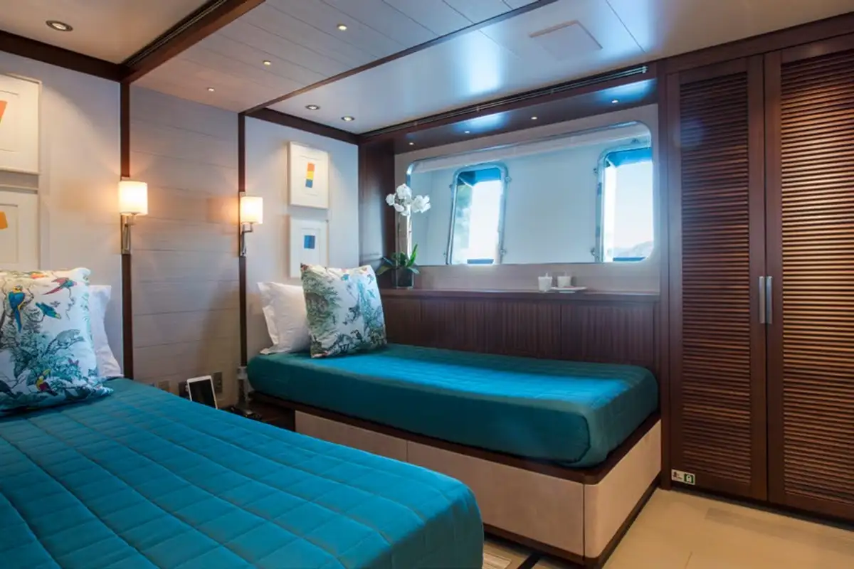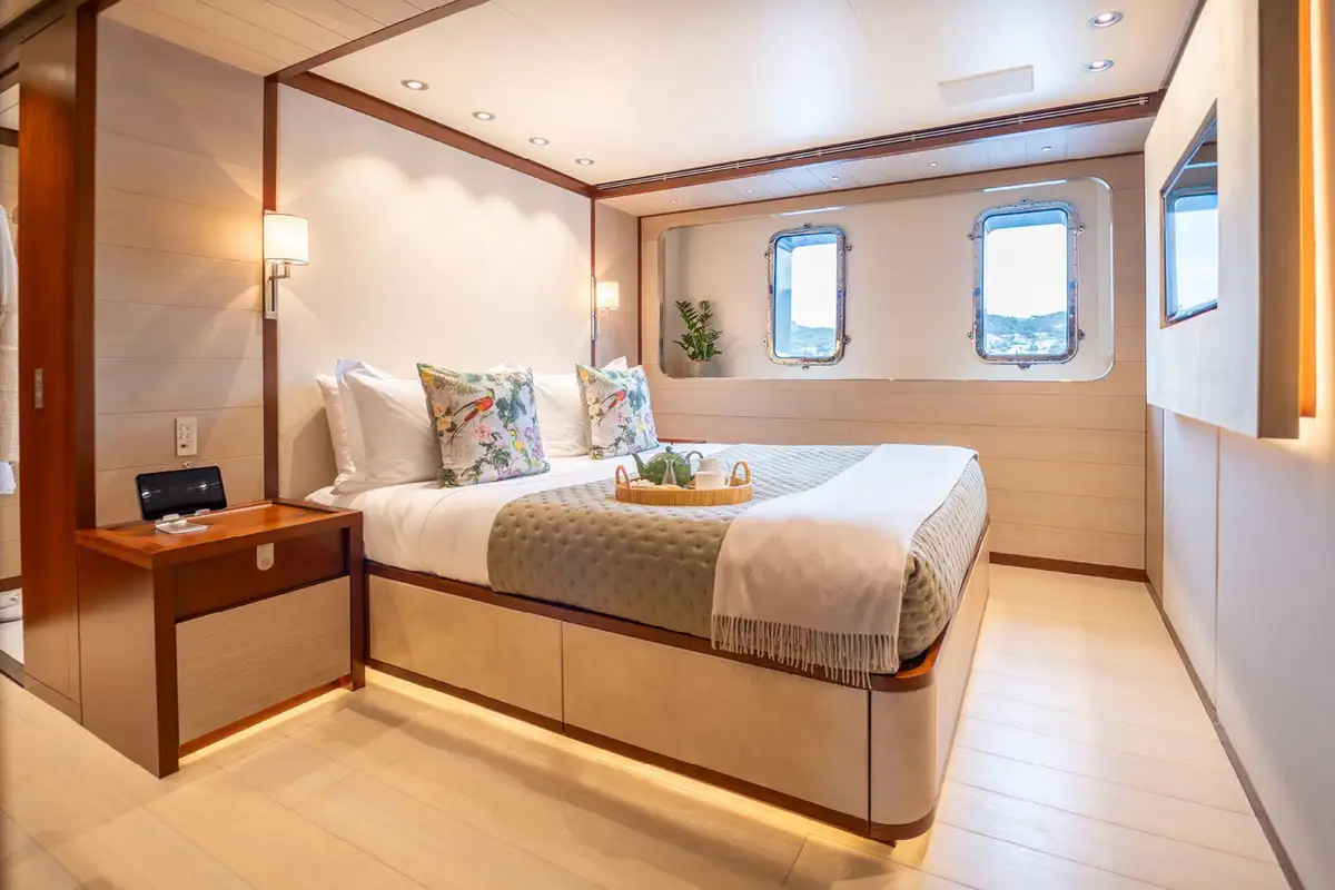 When it’s time to retire, MOKA’s accommodation envelops guests in absolute luxury. Five spacious cabins include a full-beam master suite on her main deck with his and hers bathrooms and a dressing area, as well as two VIP Queen cabins and two convertible twin cabins located on the lower deck.