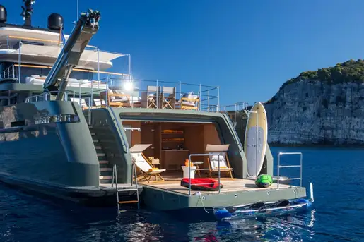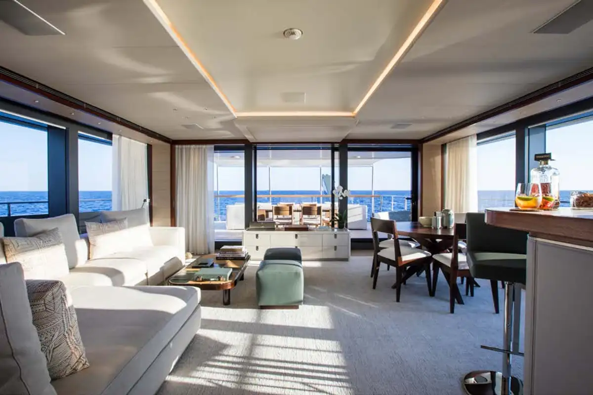 As soon as you step on board MOKA you will be impressed by the volume of deck space available for guests. The main deck is very spacious and probably where you will spend a lot of your day. The large infinity pool features a contraflow current feature, making it ideal for swimming or relaxing, while MOKA’s exceptional beach club below offers both a bar for having drinks at water level, and a swim platform for easy access to her expectational collection of tenders and toys.