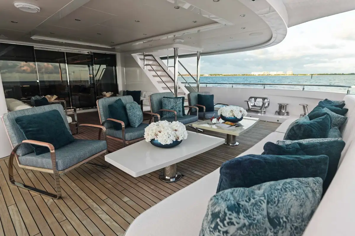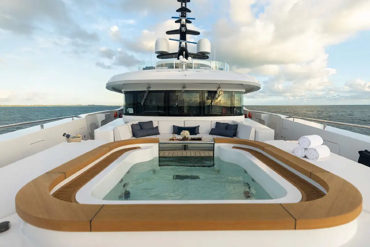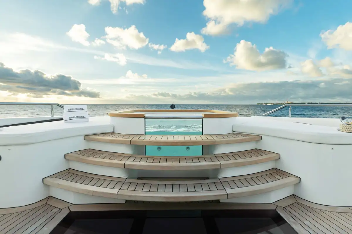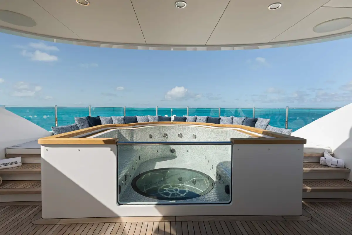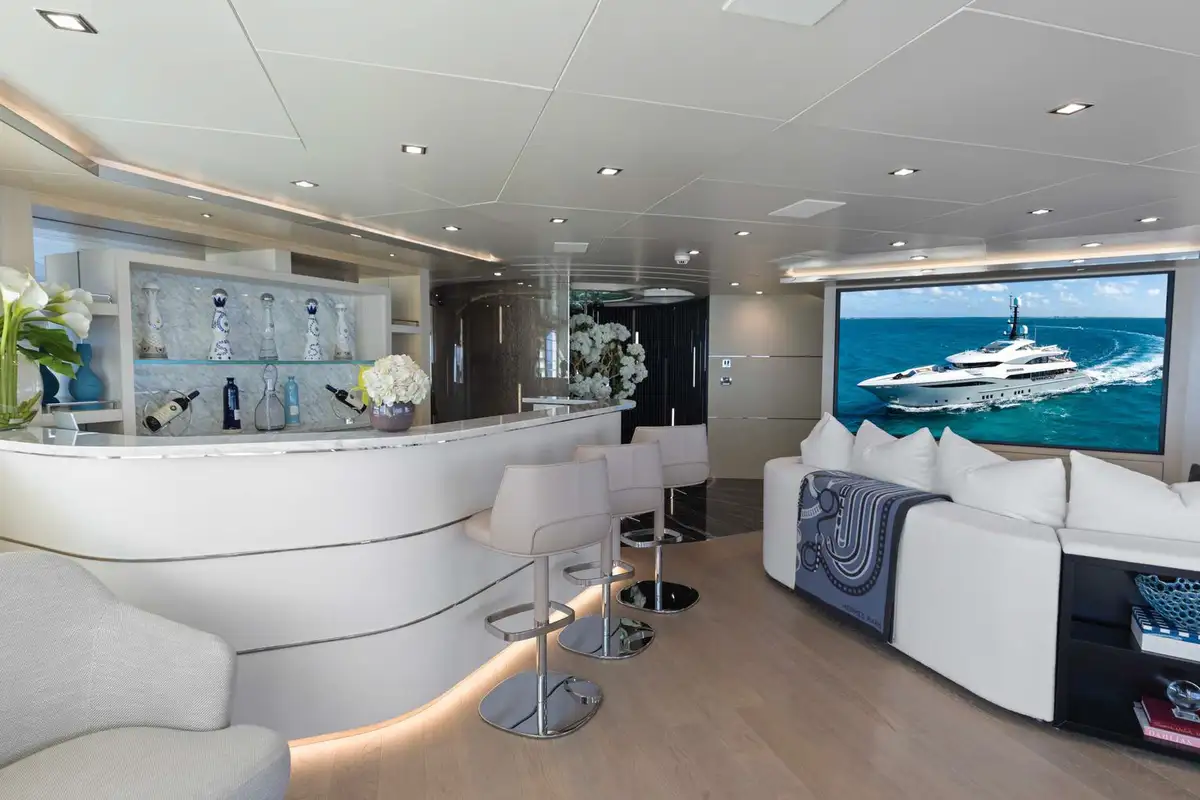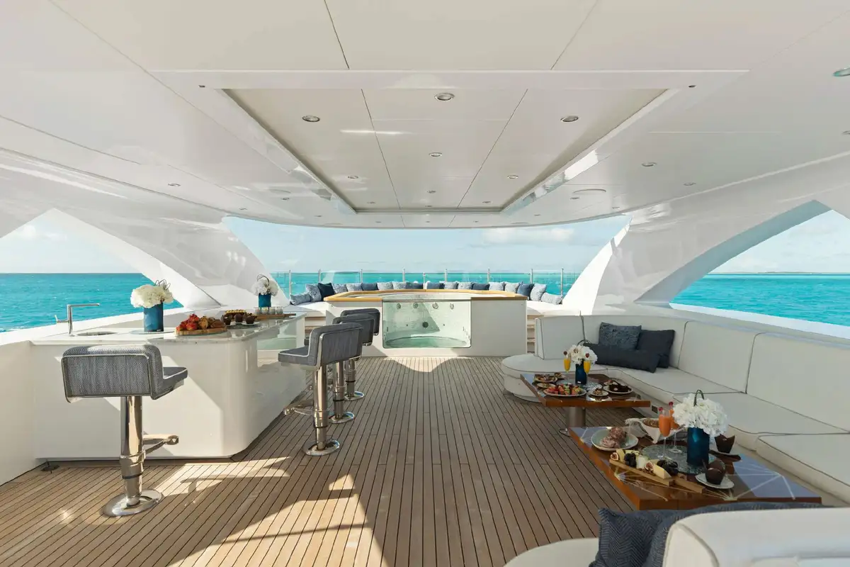 MOONRAKER offers you and your guests a host of places to relax and enjoy your location. On the sun deck, you can enjoy drinks and views from the cocktail bar, unwind in the jacuzzi, or spend time conversing with friends on the sunpad or the aft lounge area. Those wanting to relax in the shade can enjoy their surroundings from the raised seating in the sky lounge – just a few steps down from the sun deck.