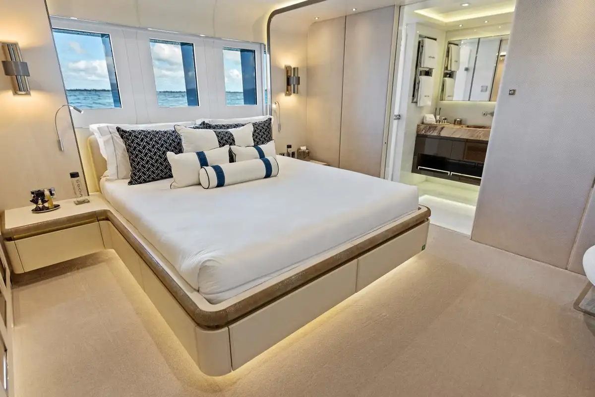 Wherever you choose to dine, you can retire to the main saloon afterwards. With a cocktail bar and a long leather sofa, you can decide which space you’re drawn to the most. At some point, it will be time to retire to your suite.