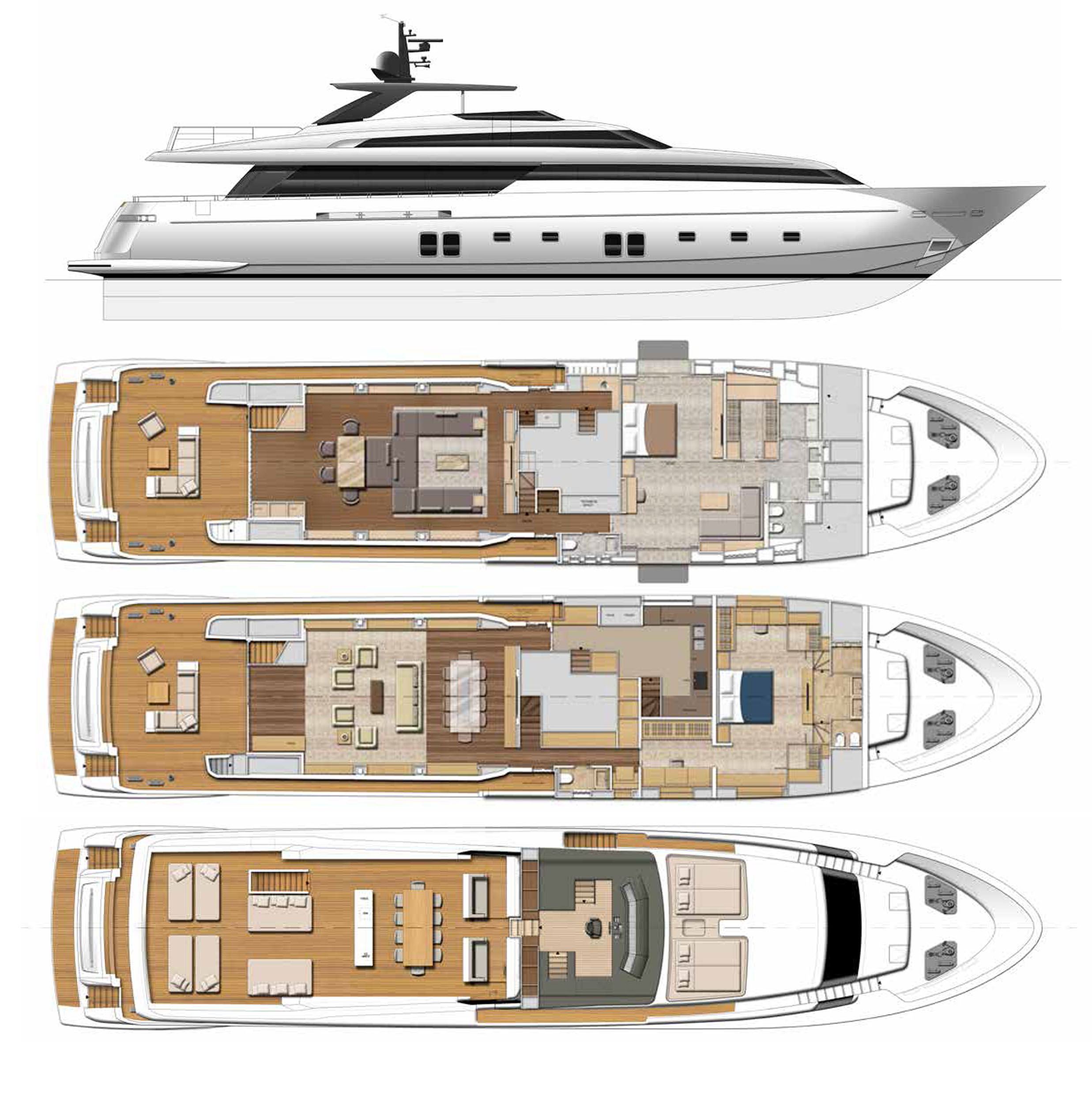 - Balconies from master cabin and main salon