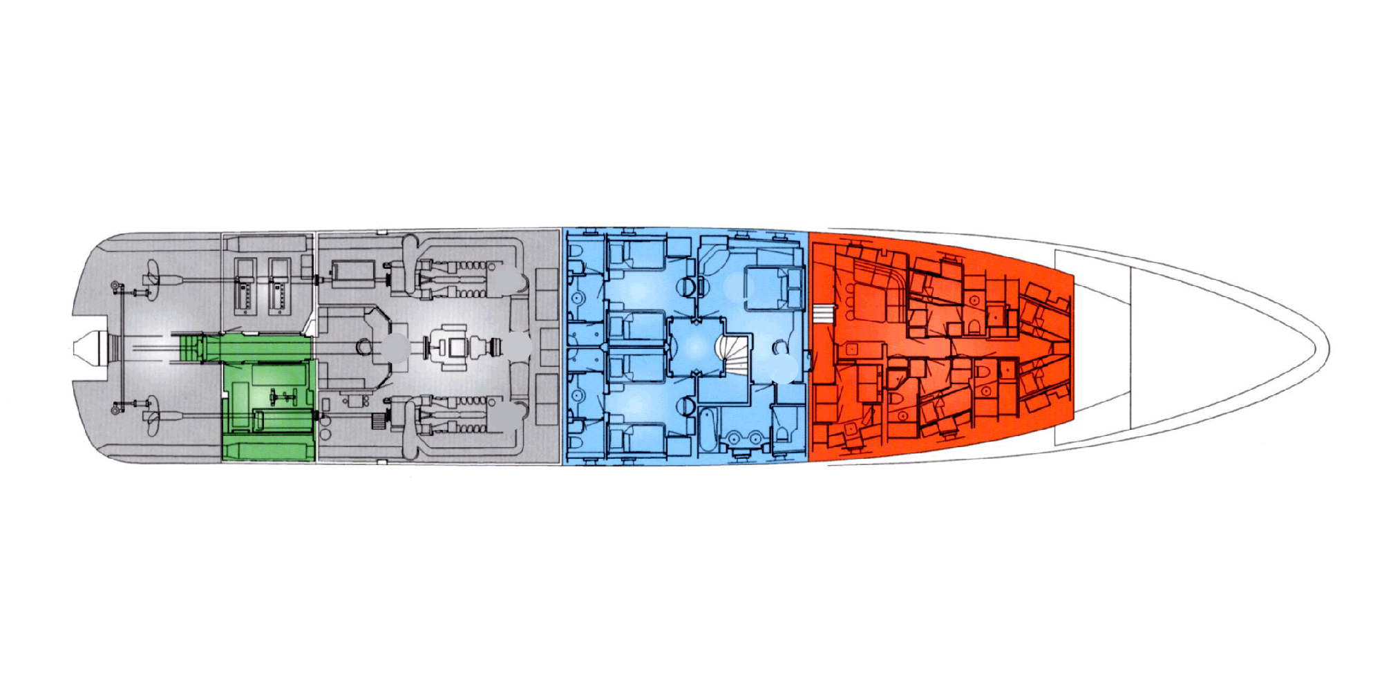- Zero speed stabilisers to reduce any rolling motion while at anchor