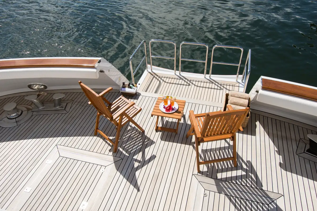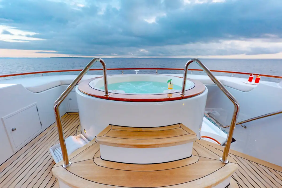 If you tire of being in the sea, you can always take time out on the flybridge jacuzzi and sunpads around it.