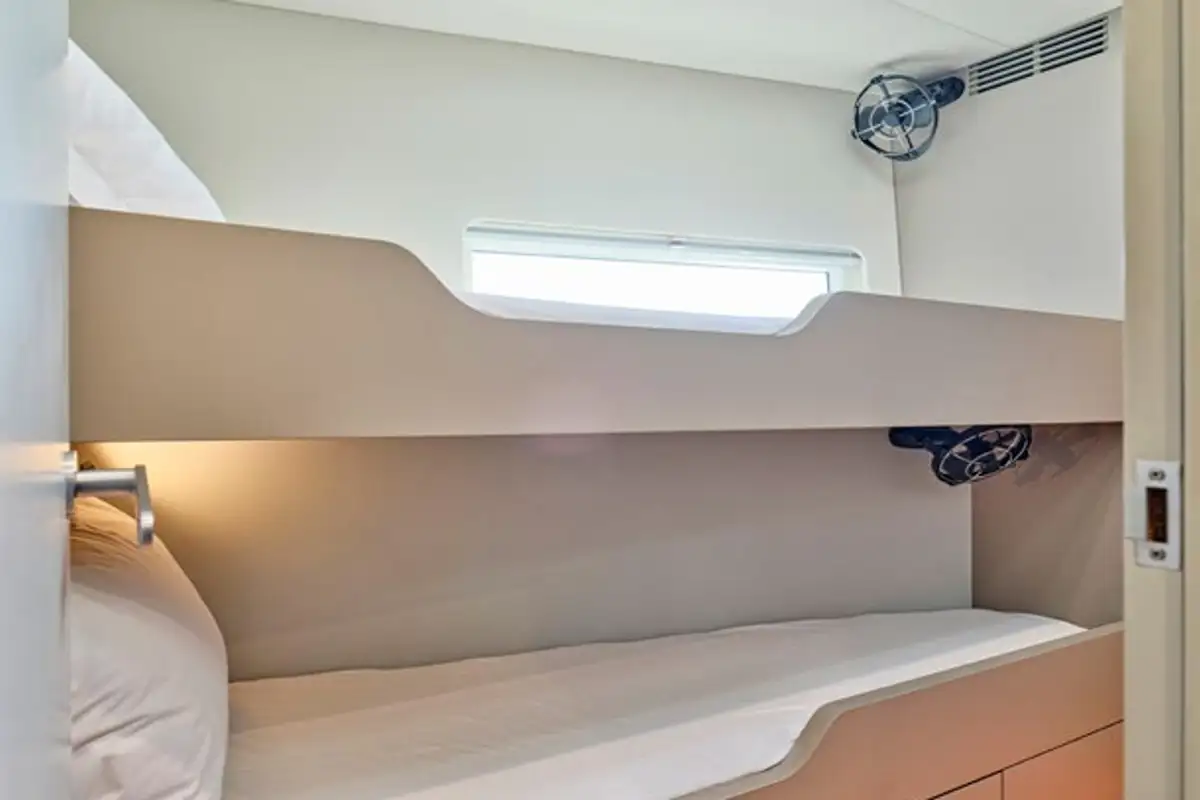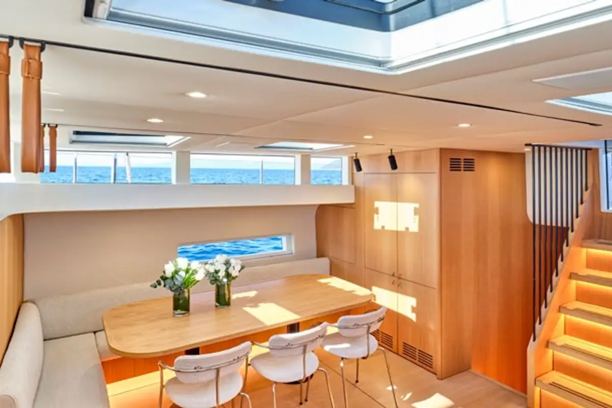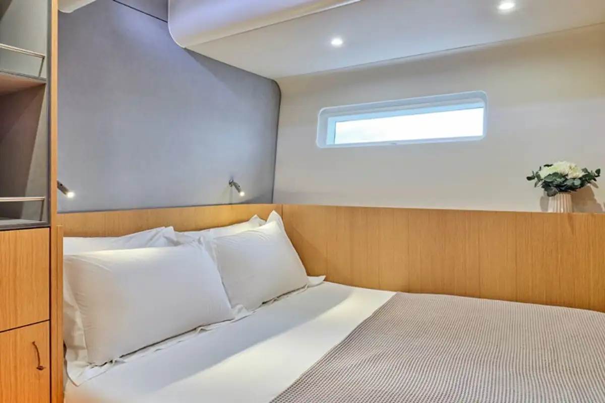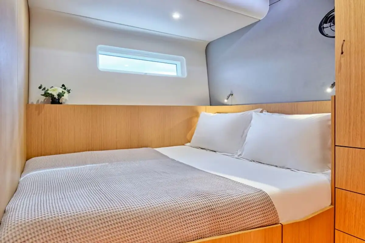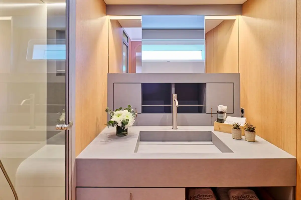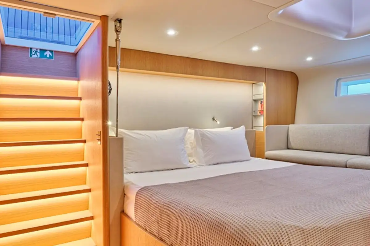 NADAMAS accommodates up to eight guests in four double en suite cabins, and a professional crew of three ensures every detail is taken care of for a seamless, luxury charter experience.