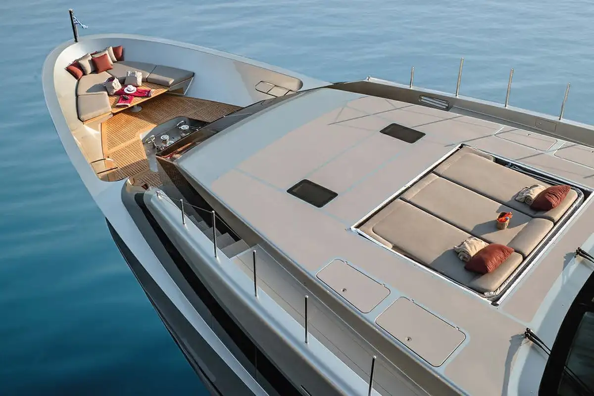 Stand-out features include four fold-down balcony terraces on the main deck, which bring the seascape seamlessly into the lounge and master suite on both sides; and all-new modern minimalist interior design throughout the interior.