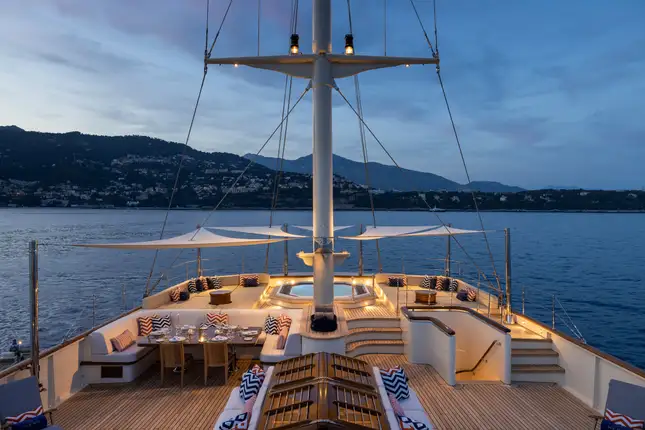 • 5.7m resistance pool on the foredeck and large jacuzzi on the sun deck
