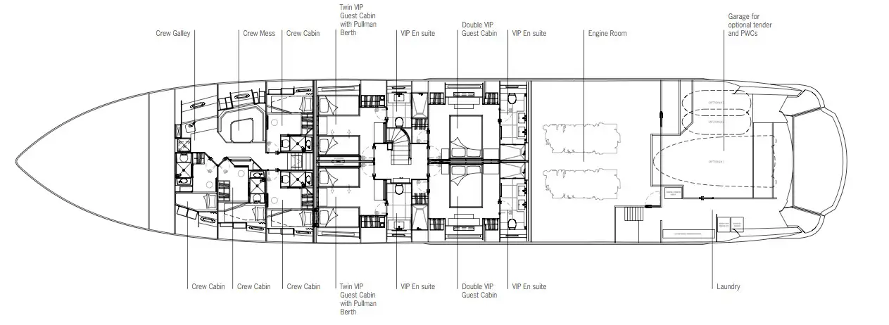 - Zero speed stabilisers to reduce any rolling motion while at anchor