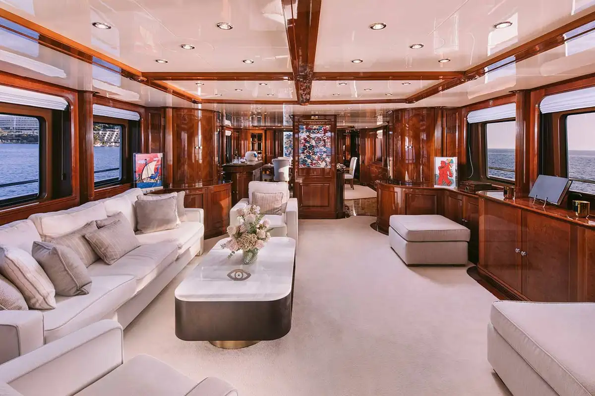 Designed to host 11 guests in five cabins with service from a crew of eight, she is notably spacious for a yacht of this size. Her elegant Zuretti interior is as classic, refined and finely crafted as her iconic exterior, with an opulent yet easygoing, welcoming vibe. The main inside social spaces are beautifully bright, exquisitely finished and were fully refurbished in a major refit just a couple of years ago.