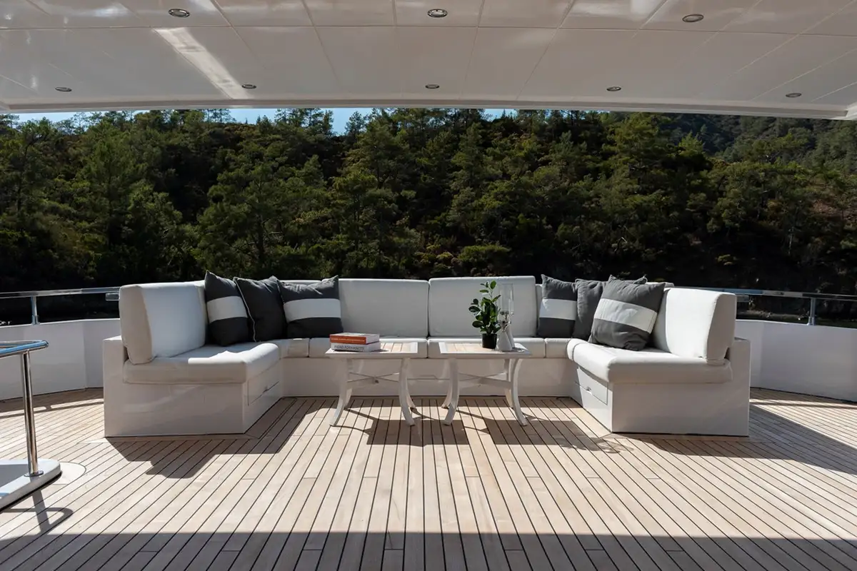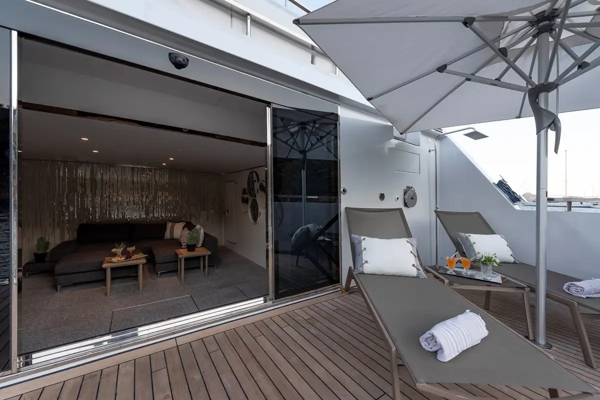 OCEAN BREEZE is built for enjoying the outdoors. The foredeck is perfect for morning yoga, casual cocktails or just quiet conversation. On the aft deck, U-shaped seating provides a social hub in the shade, with panoramic views all around.