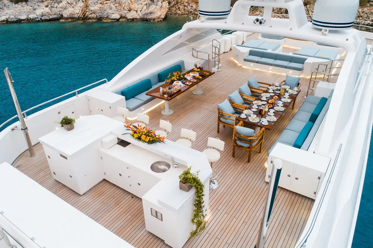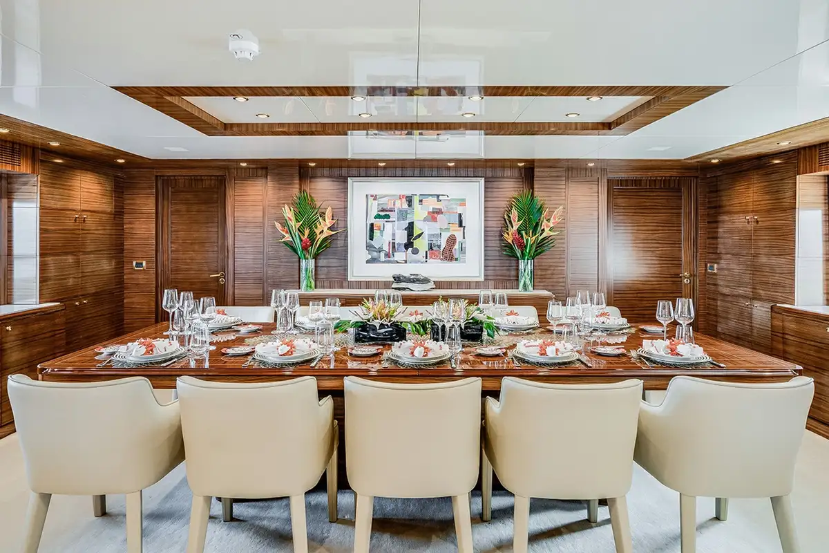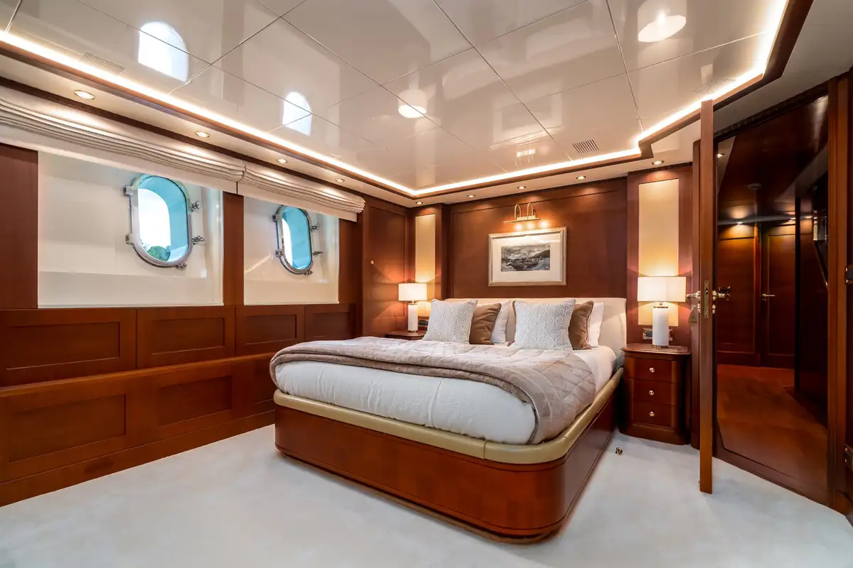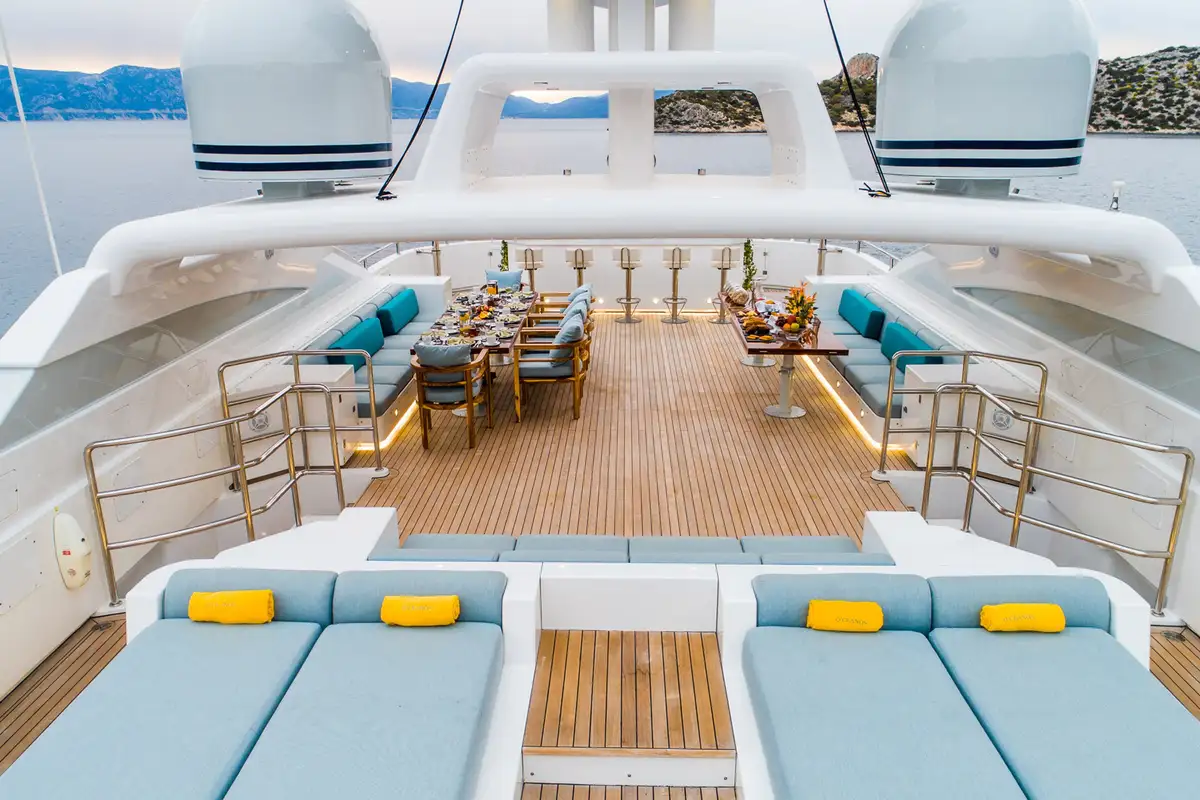 This 49.2m (161.5ft) luxury yacht will give your party of 14 cruising in classic style. She gives you generous deck space, from the vast sun deck for hosting parties, to the intimate lounge on the Portuguese Bridge.