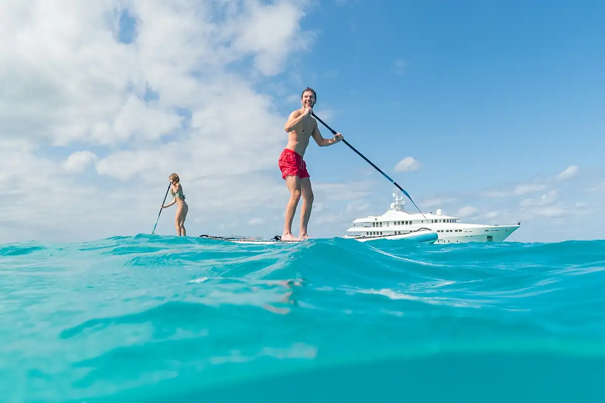 Back on board, the children are keen to take the inflatables out for a spin. The crew have everything under control so you know that they are in safe hands. Windsurfing and waterskiing are sports on offer that may turn into a lifelong passion for them.