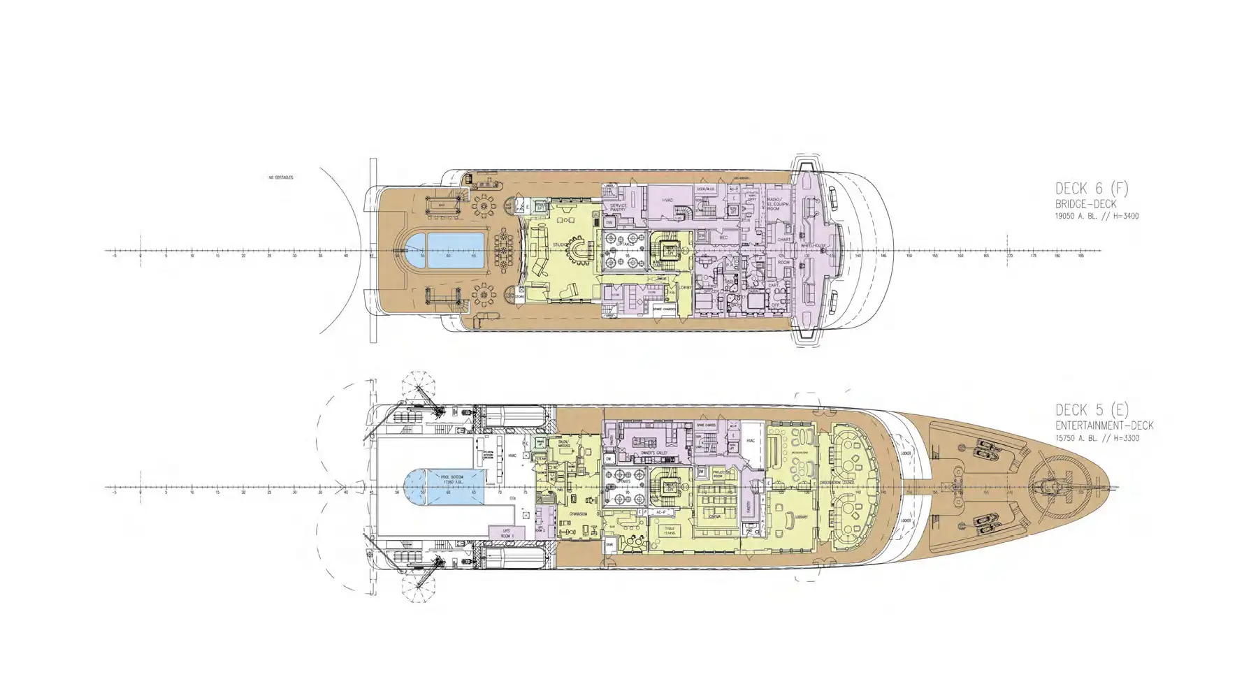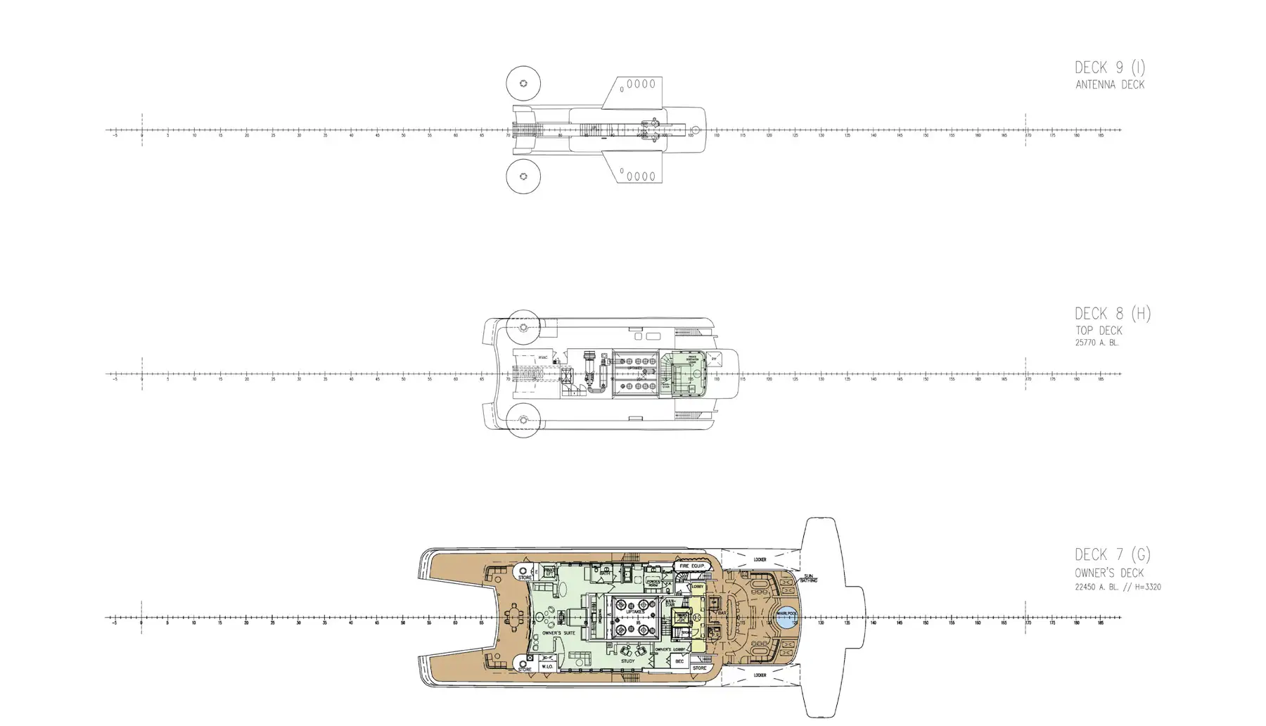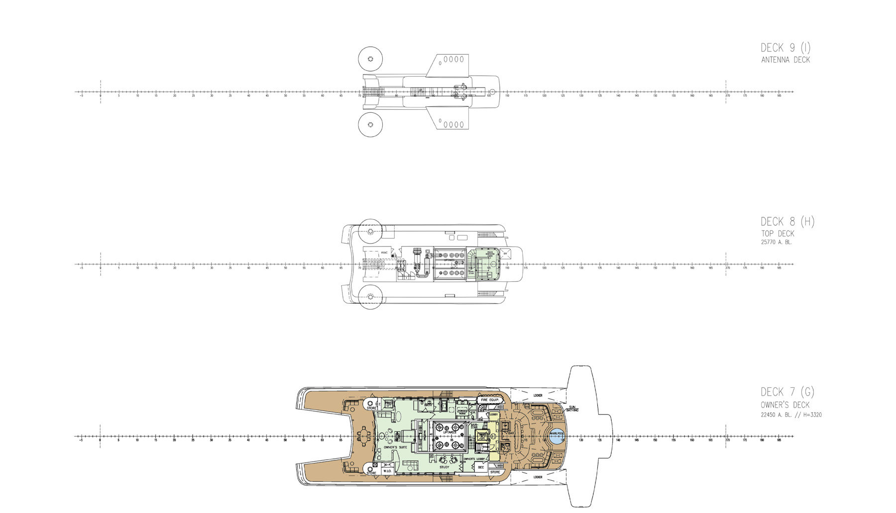 Offering a genuine first-class experience while cruising or at anchor, OCTOPUS has plenty of space for enjoyment and activity on board. With a full owner’s deck including a private bar, jacuzzi, and al fresco dining area, this deck provides the owner with a sanctuary of privacy and security.