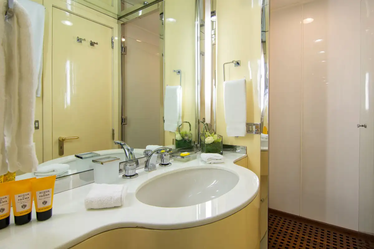 Once the sun begins to wane, it’s time to freshen up ready for the evening ahead. While some may choose to congregate at the sky lounge bar, others can relax on the main deck aft, all coming together for an al fresco dinner on the upper deck aft where the crew will have set up an elegant tablescape for your first night on board. Those with energy still to burn can trip their dancing shoes on the dancefloor or, if it’s time to call it a day, head straight to bed for a deep slumber, ready to repeat it all again the next day.
