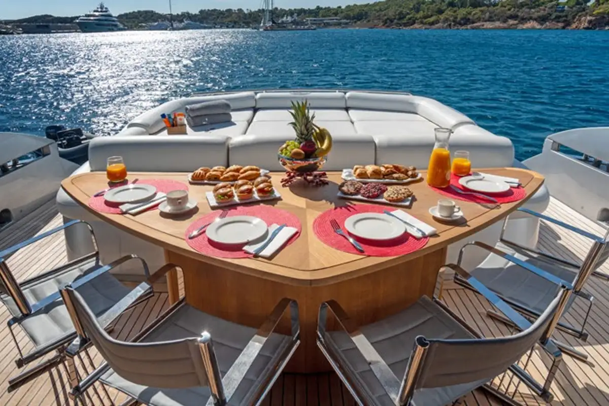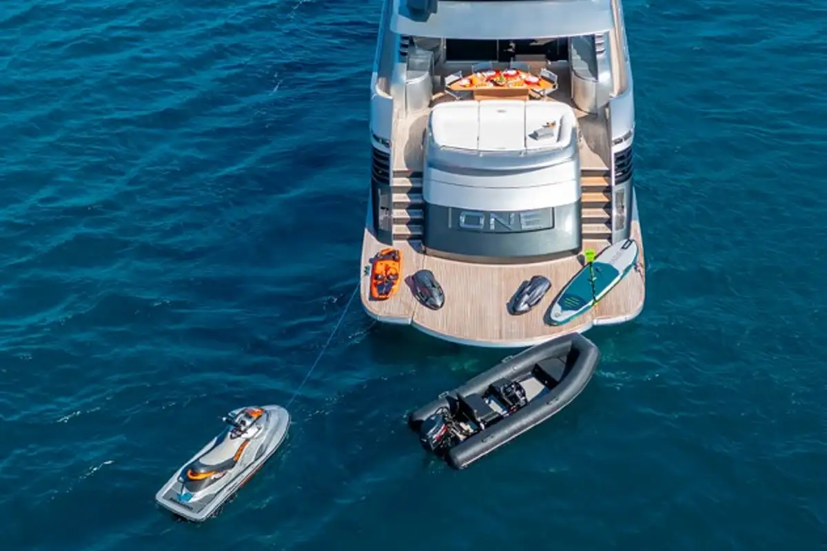 Whether you're enjoying a quiet breakfast at anchor or powering across the waves, ONE is a head-turner with a dynamic presence. A crew of four ensures a seamless charter experience, while a range of watertoys adds adventure to every day at sea.