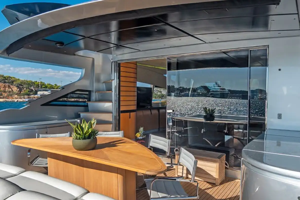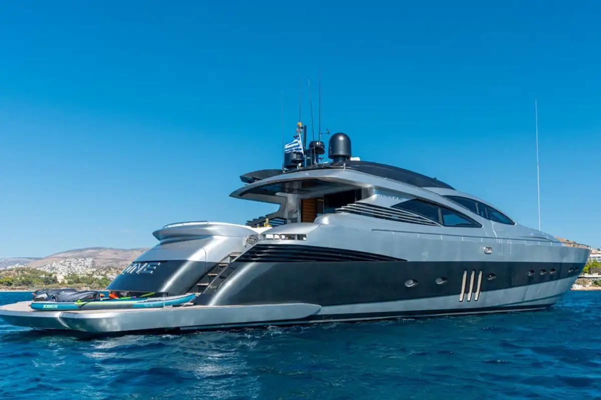 Sleek, stylish, and built for speed, ONE is your private escape on the water. This 27.4m Pershing is made for outdoor living – think sun-drenched days on the foredeck, lazy lunches under the shade, and sunset swims straight from the oversized swim platform.