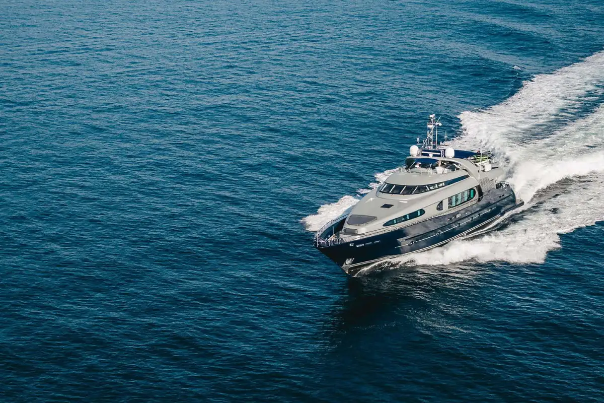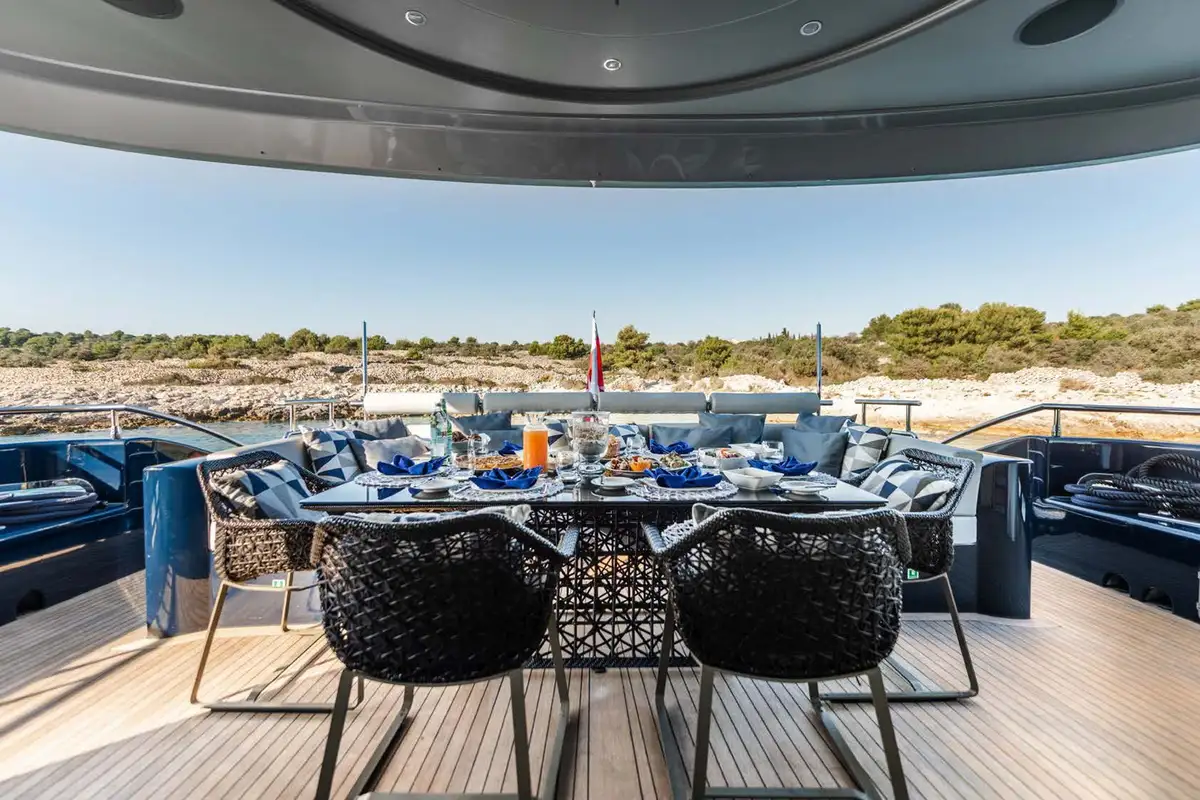 With an interior that is a stunning mix of a spaceship, high-end restaurant and private casino, your time on ONE BLUE 38.8m (127.2ft) will be a charter you remember. After ONE BLUE’s 2025 refit, her exterior is just as eye-catching. With a deep navy hull and silver superstructure, even when she is not motoring at her top speed of 28 knots, she still turns heads. Few yachts offer a unique interior, style and comfort in a fast cruising yacht.