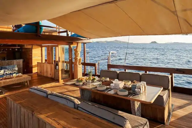 Famed for its panoramic hilltop views and long beaches, Gili Lawalaut is a serene anchorage with shallow reefs perfect for kayaking. Dive sites around the island yield sightings of reef sharks, tuna, and schools of vibrant fish.