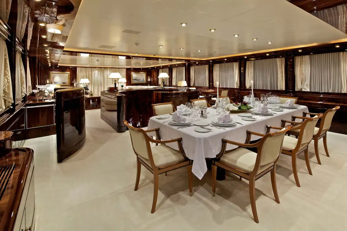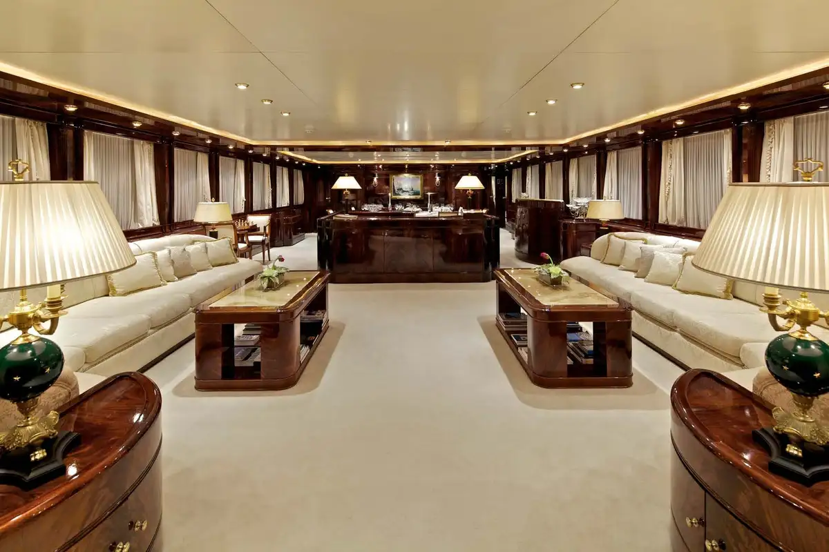 Nowhere shows off the craftmanship on board better than O’RION’s main saloon, ornate furnishings and fine materials blend to create a luxurious area to unwind, dine or enjoy games and conversation. The broad lounge area has long sofa seating on both sides, creating a welcoming and social setting. Ahead of this is the wonderous formal dining area that is spacious enough for 12 guests. The centrepiece is the ornate dining table, an impressive stage that sets the scene for grand culinary feasts and celebrations from O’RION’s professional chef.