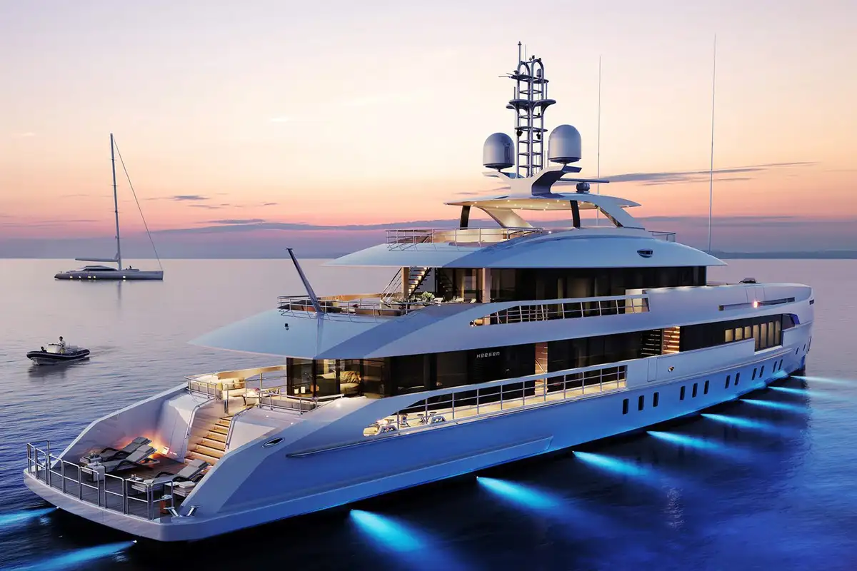 Heesen’s brand-new ORION is a vision of elegance, defined by a chiselled bow, sharp lines, and a long, lean waterline. Powered by advanced hybrid propulsion, she offers a cruising experience that is cleaner, quieter, and more efficient than traditional diesel-powered yachts.
