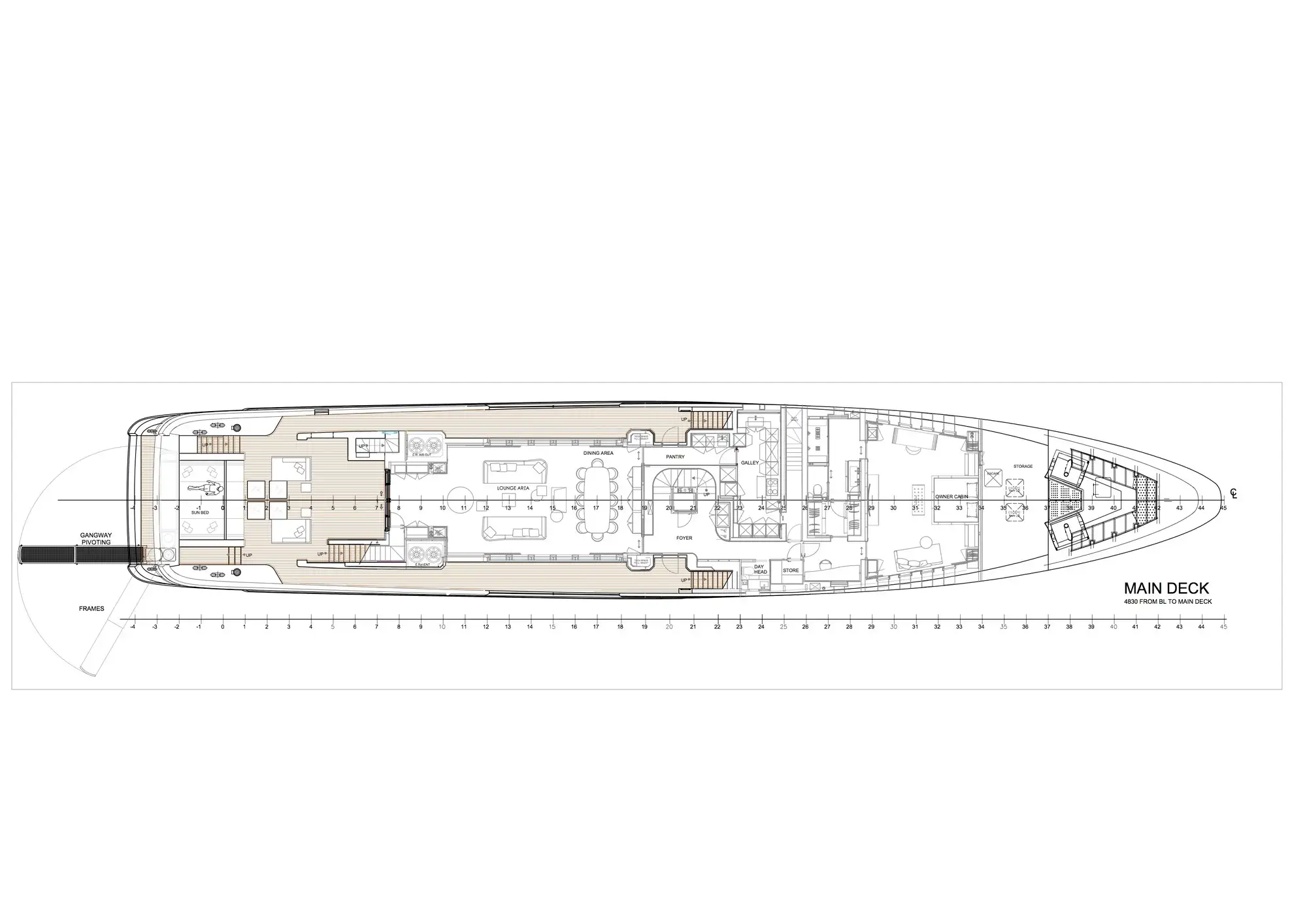 Her generous interior spaces are enhanced with high ceilings and huge windows throughout, especially in the sky lounge and main lounge. You’ll wake up each morning to showstopping views through floor to ceiling windows – six on each side of the full beam master suite – and start the day in your own luxuriously large private space. Your guests, meanwhile, will be equally comfortable in their luxurious lower deck cabins with a glass elevator to whisk them up to join you on the sun deck for breakfast.