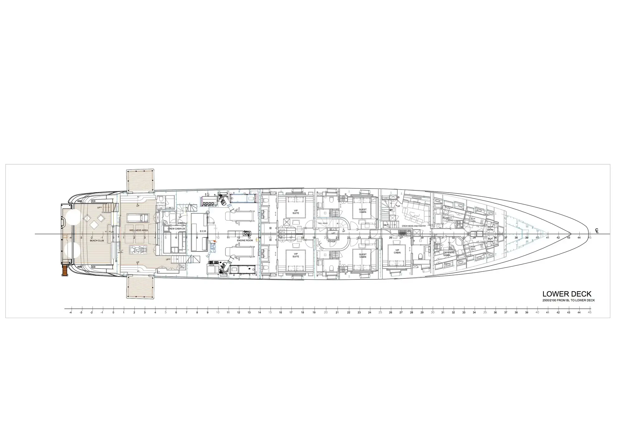 What’s more, she’s one of the quietest yachts you’ll ever experience and virtually vibration-free. And with twice the usual number of stabilisers fitted, wherever you take her a super-smooth motion is guaranteed. There’s a wide choice of sunbathing spots on board, both sociable and private, a wellness centre with a gym and massage table plus a family-size 4,000-litre spa pool up on the sun deck, of course.