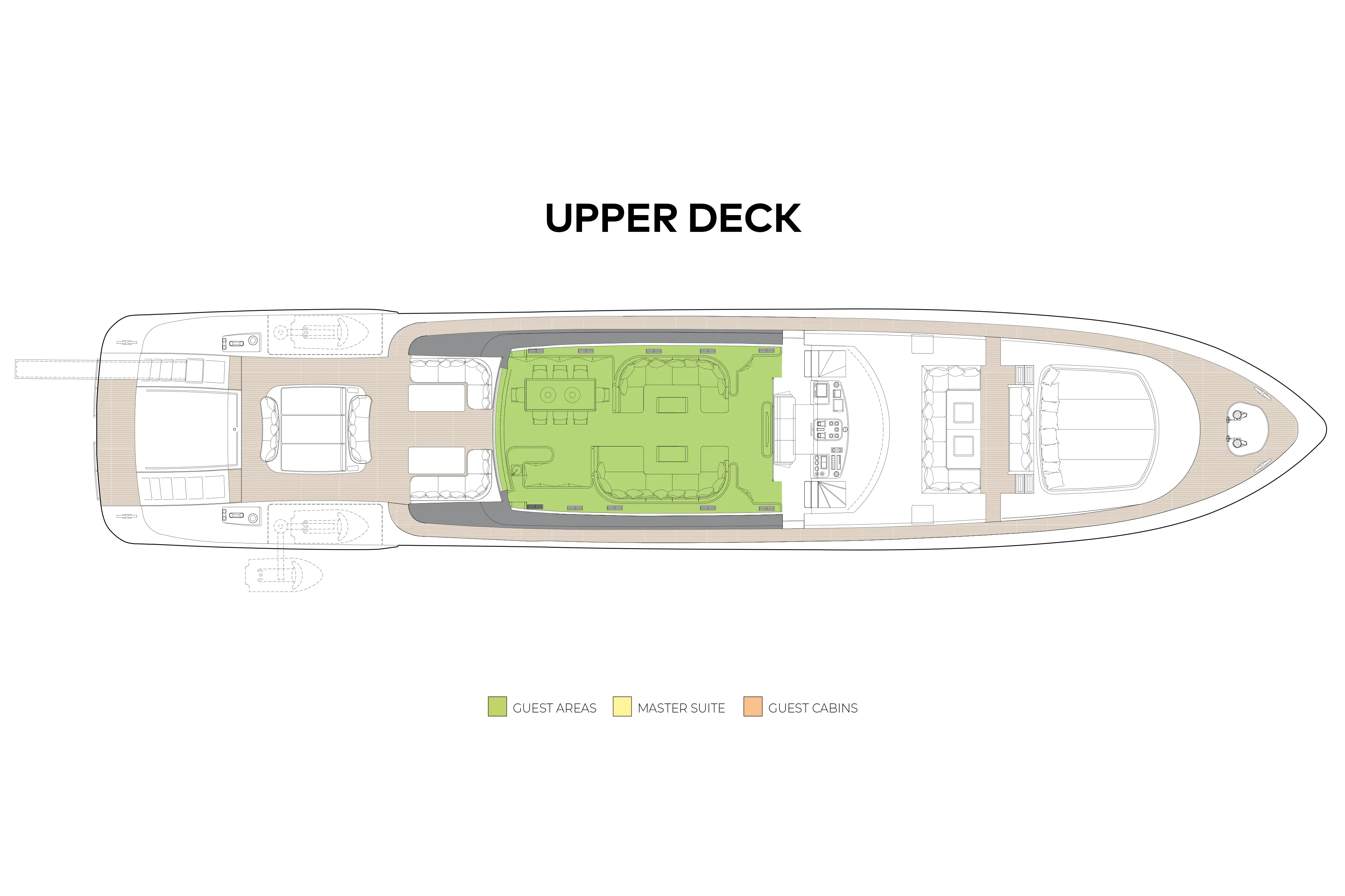 When the anchor goes down, her foredeck is a huge social space for guests to enjoy with a comfortable lounge and a broad swathe of sunpads to stretch out on. The bathing platform astern is a great launch pad for her jet ski, SeaBobs and paddleboards, and her jet RIB tender is perfect for wakeboarding, water skiing, beach landings and inflatable tows.