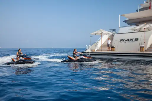 For the water-sports enthusiast, PLAN B’s watertoy inventory is extensive. A fleet of tenders serves shore excursions, while two high-speed waverunners, SeaBobs, stand up paddleboards, towable inflatables, snorkelling and diving gear, wakeboards and waterskis deliver endless fun on the waves.