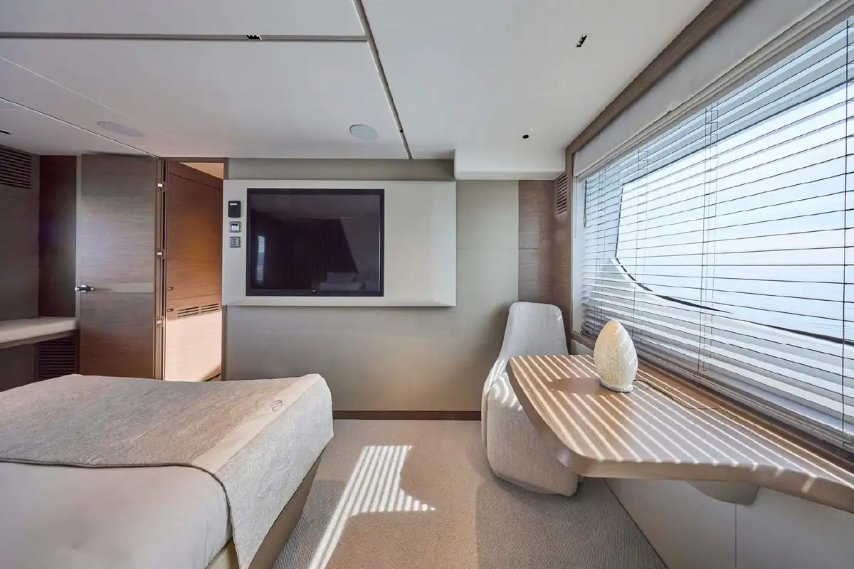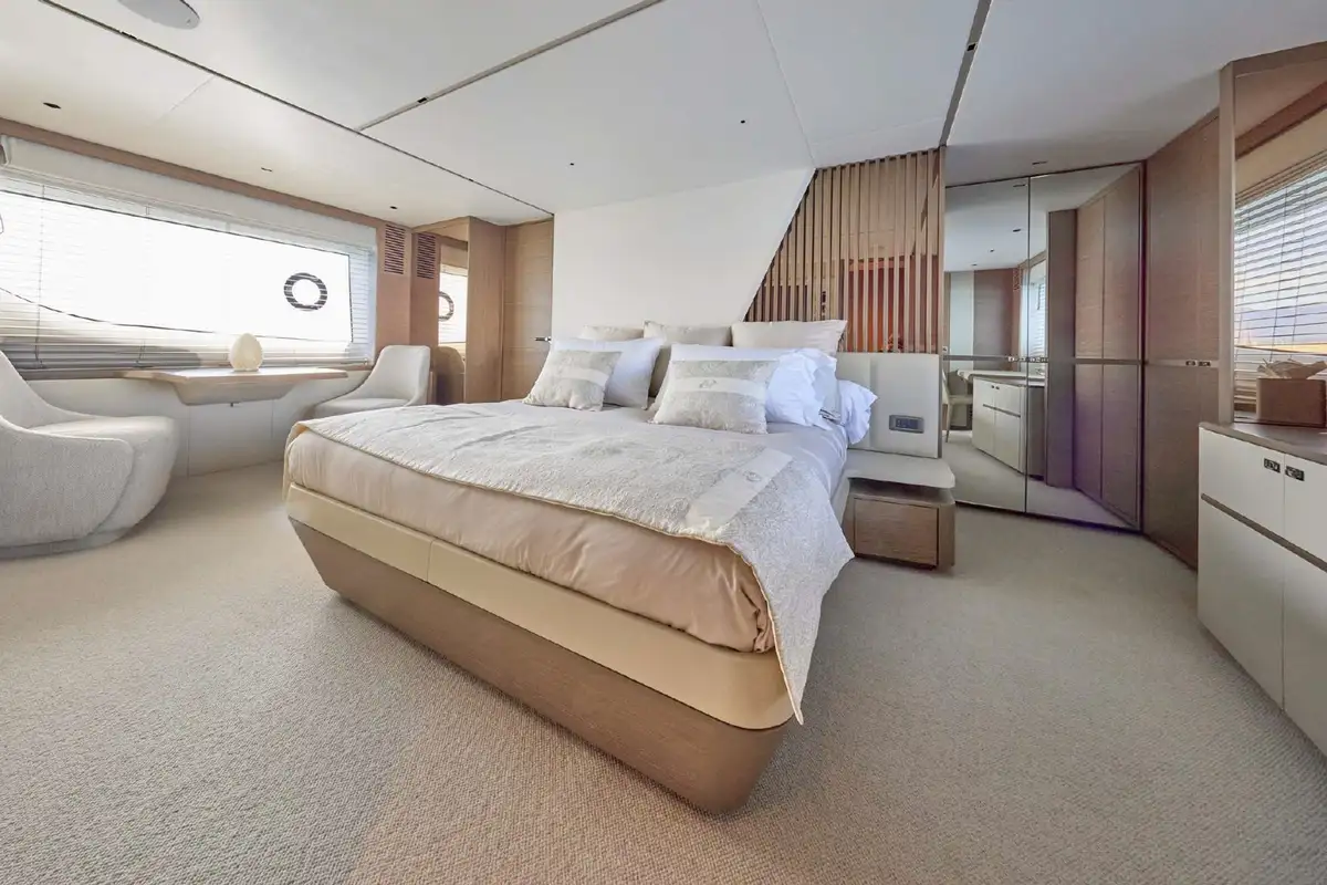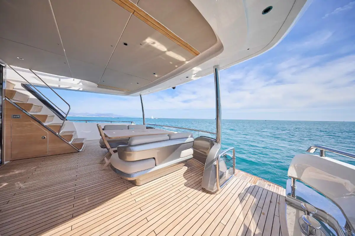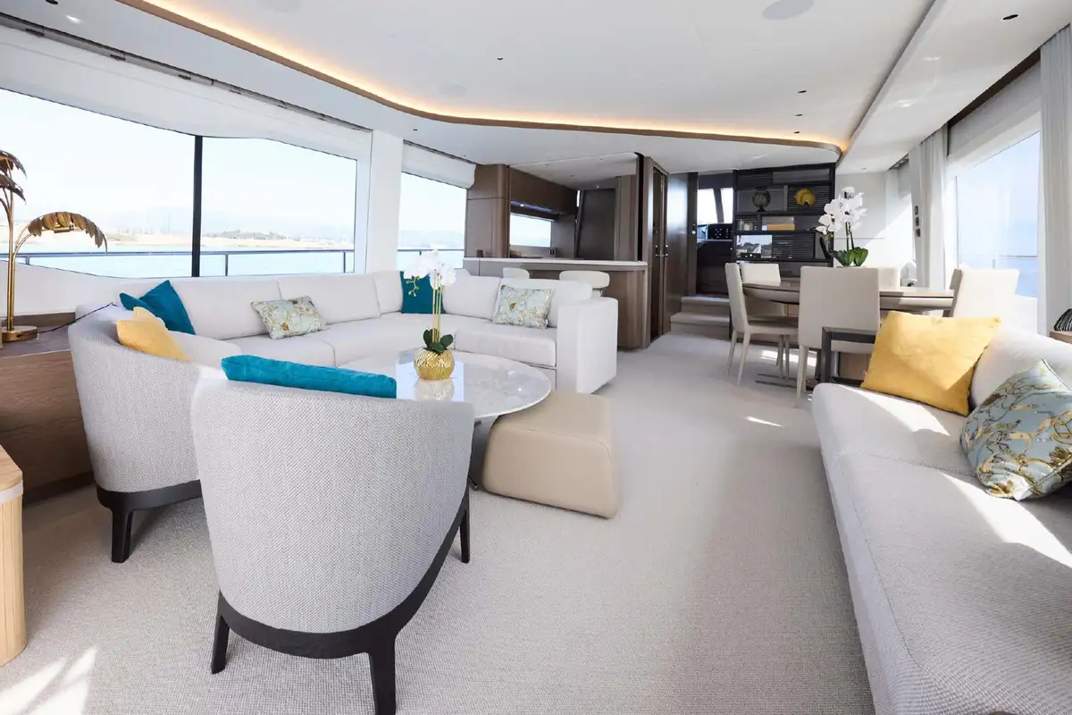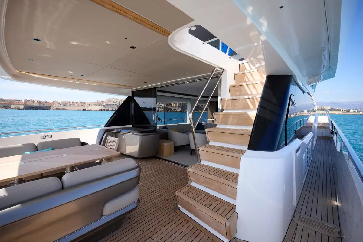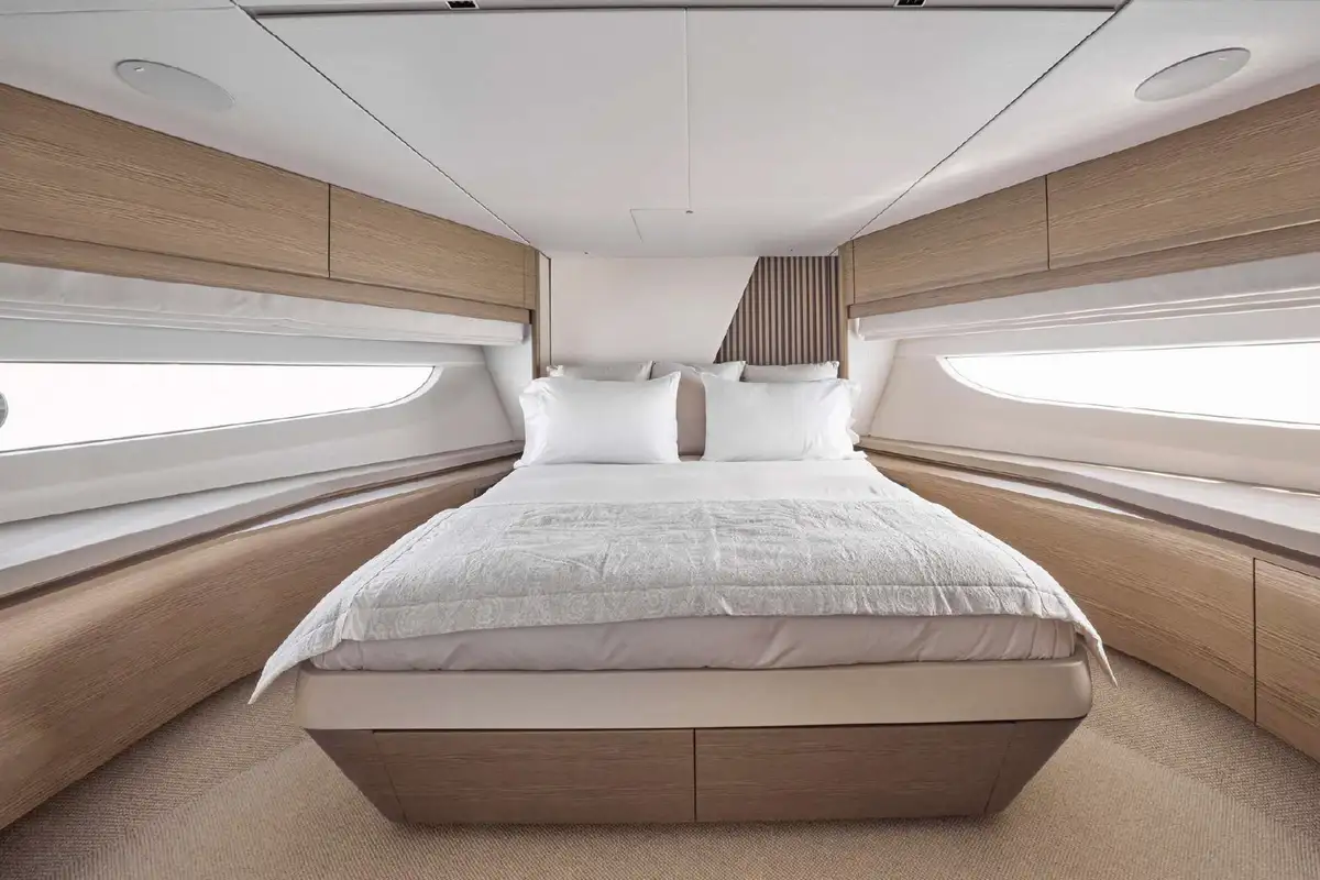Step aboard POLARIS, a 26.2m Princess Y85 delivered in 2024, where contemporary design meets timeless elegance. Her sleek Pininfarina exterior lines and expansive decks invite you to bask in the Mediterranean sun, while her GRP hull ensures a smooth and swift cruise at up to 20 knots.