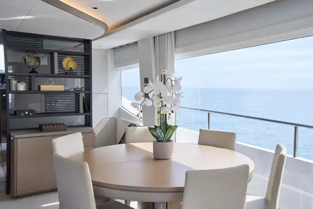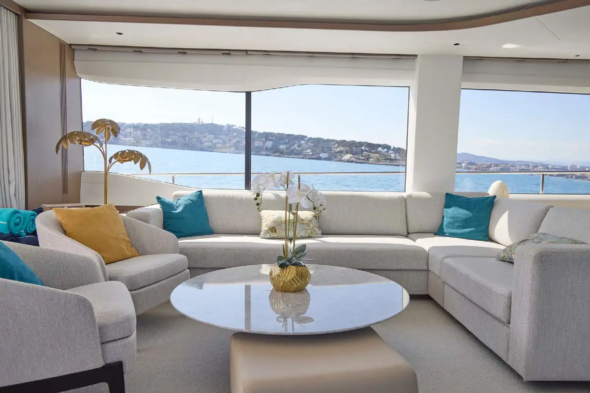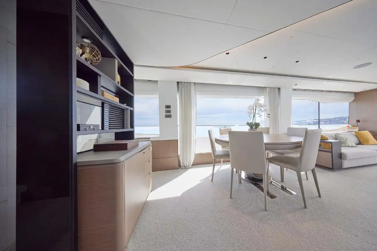 Inside, POLARIS offers a sanctuary of sophistication. The main deck lounge, bathed in natural light, features plush furnishings and state-of-the-art entertainment systems, creating an inviting space for relaxation and socialising.