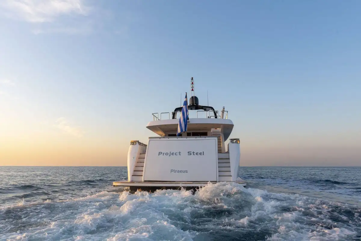 If you’re looking for a yacht that stands out from the crowd for your holiday in Greece, this might well be the one for you. Designed for up to 12 guests with a seven-strong crew, the 34m (112ft) PROJECT STEEL is a bold and innovative total rebuild of a successful charter yacht. She was brought bang up to date four years ago with contemporary styling and design features from bow to stern, reconfigured decks and superstructure, plus a completely new interior. She’s basically a whole new yacht.