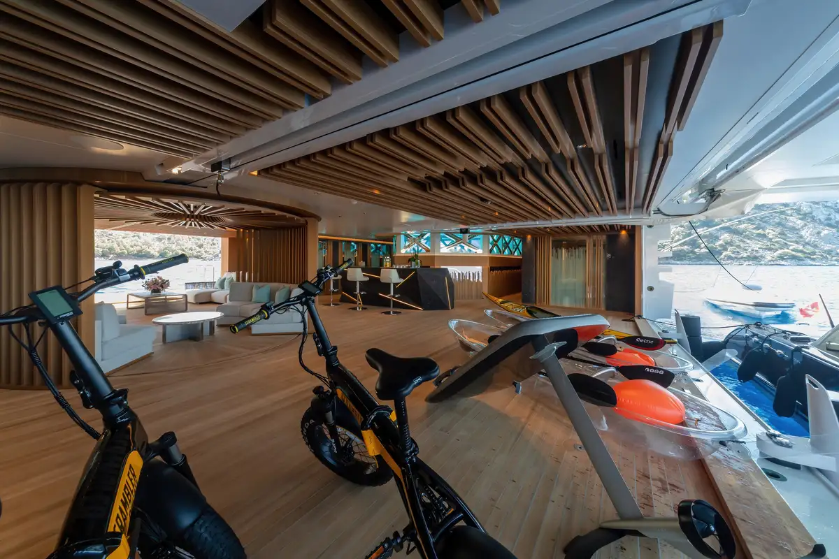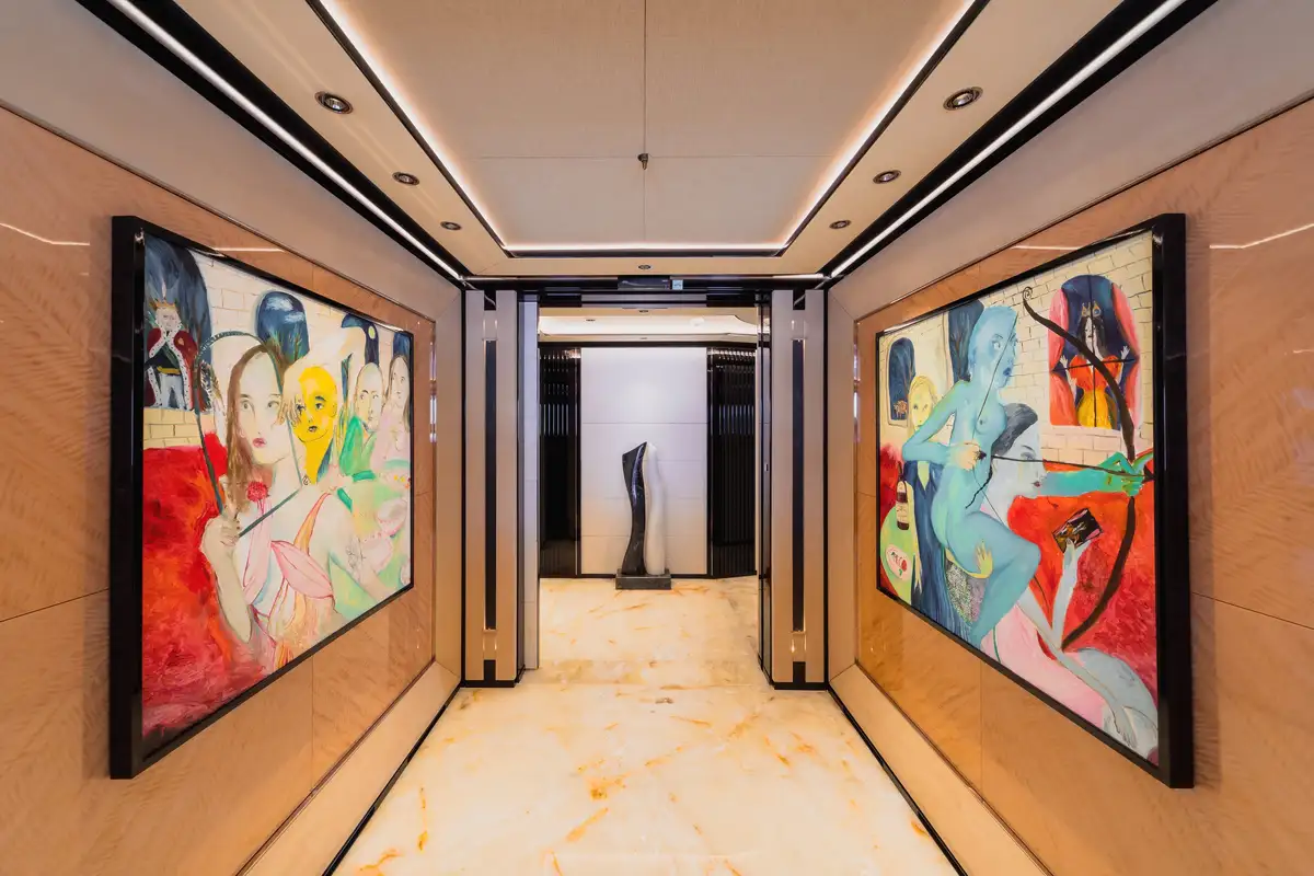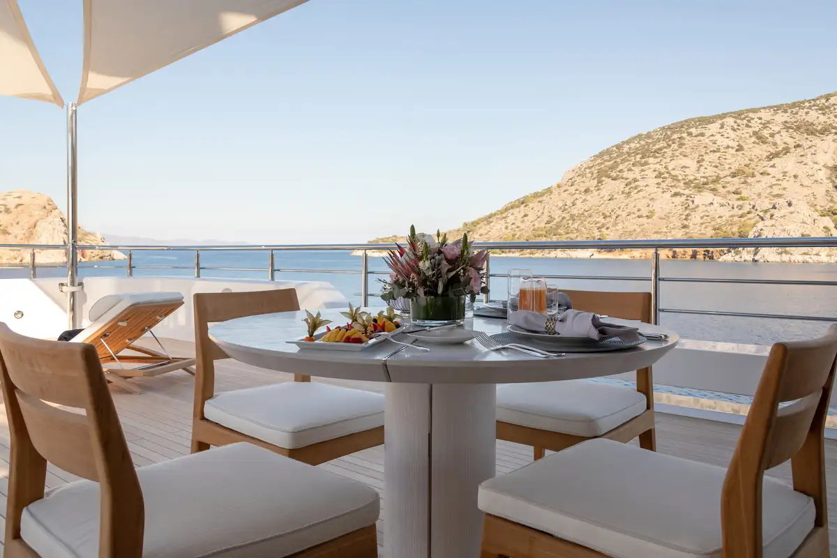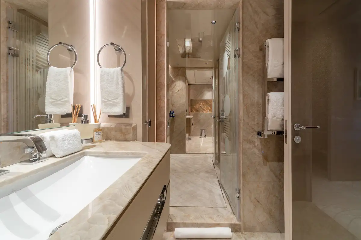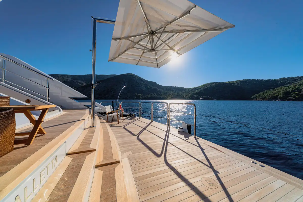 An interior flooded with natural light, redefines the connection with your surroundings and nowhere is this better expressed than in her uniquely impressive glass elevator and atrium. Other alluring features include a large private owner's deck with jacuzzi and sun lounging terrace and sensational views through full-height windows in the master suite and lounges. The main deck is home to a large pool on the aft deck with vast sun bathing facilities and bar.