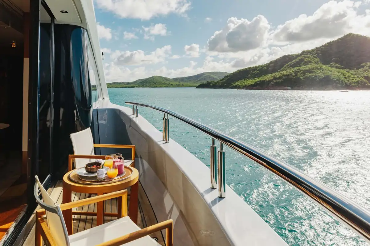 Start your morning with a workout in the gym, with the fold-out balcony lowered providing fantastic views at the waterline. After freshening up, join everyone for breakfast on the bridge deck aft while soaking up the vistas of the bay that inspire your morning’s activities.