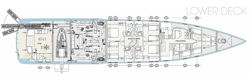 - Zero speed stabilisers to reduce any rolling motion while at anchor