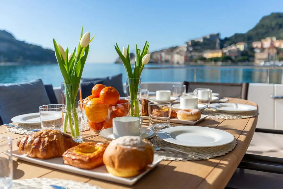 With a slick and bright interior, you can be assured of comfort on board QUEEN MARTINA. With a master cabin complete with a his and hers bathroom en suite, a VIP double cabin and then two twin cabins, you can be assured of comfort as eight guests can sleep comfortably on board. When it comes to a place to relax indoors, the main deck lounge provides a large couch to share as well as a formal dining space.