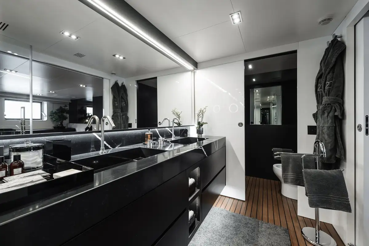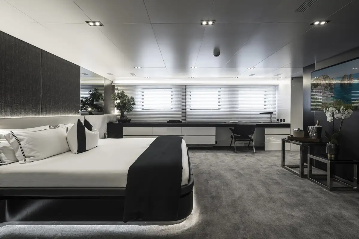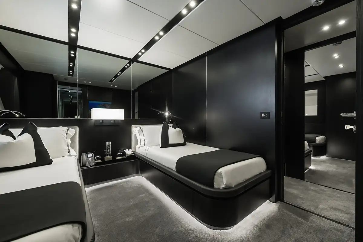Set up to welcome 12 guests, R23 gives you a full-beam master cabin on the main deck and another, equally large, VIP cabin on the lower deck – plus four more sumptuous cabins. With this luxurious comfort at your disposal, you'll wake refreshed each morning and ready to savour all that this charter has on offer.