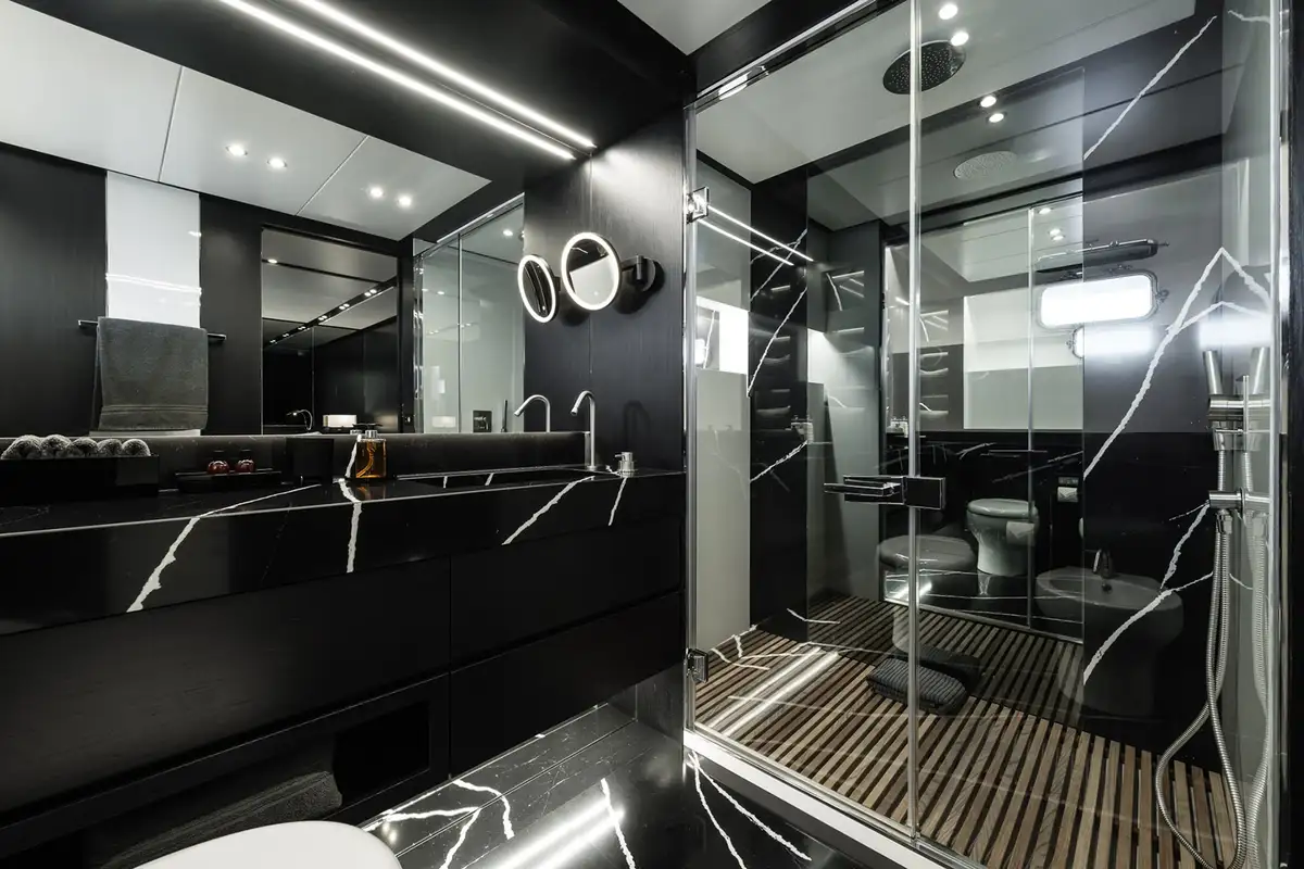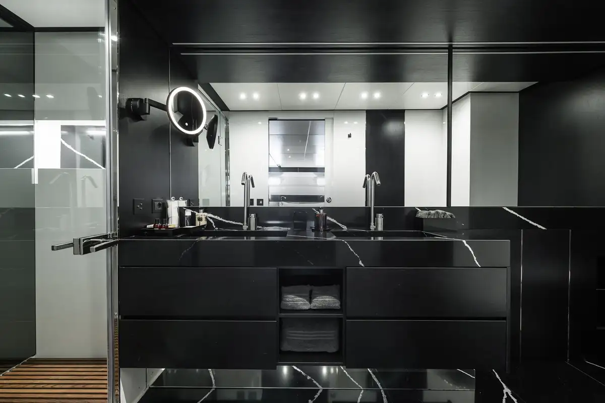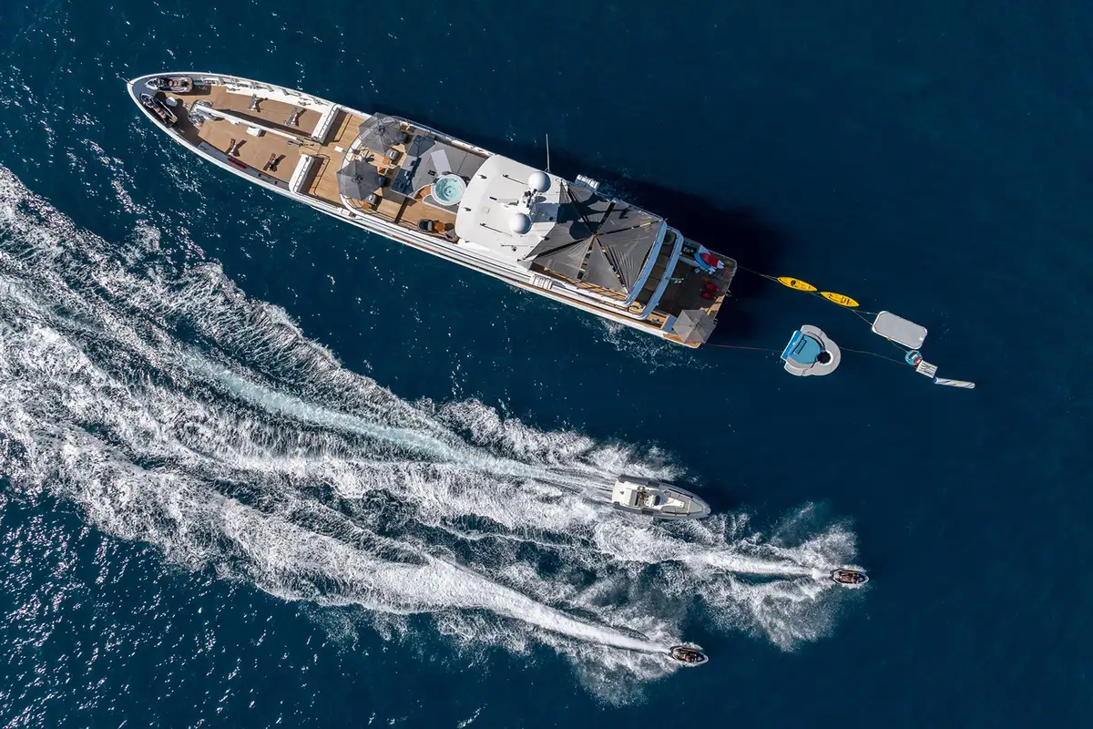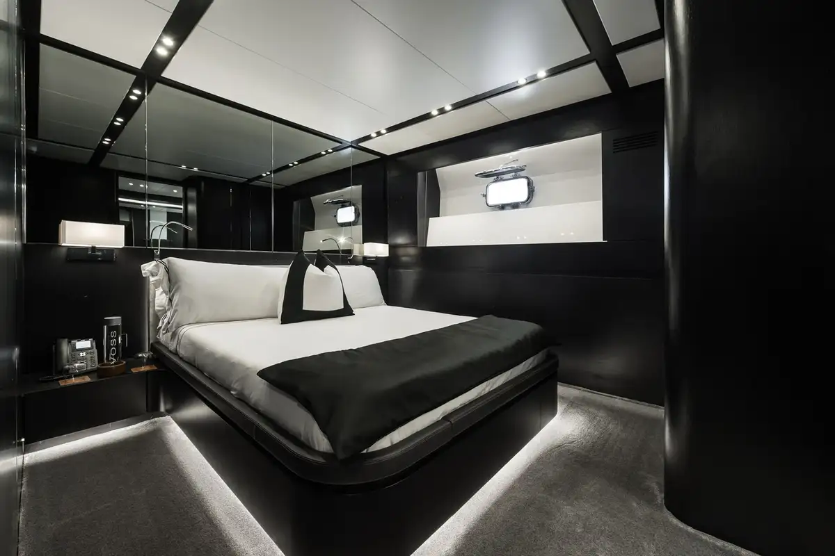 Set up to welcome 12 guests, R23 gives you a full-beam master cabin on the main deck and another, equally large, VIP cabin on the lower deck – plus four more sumptuous cabins. With this luxurious comfort at your disposal, you'll wake refreshed each morning and ready to savour all that this charter has on offer.