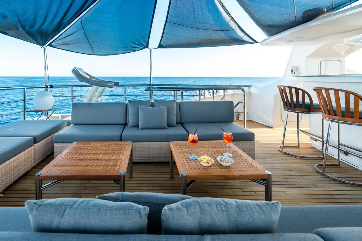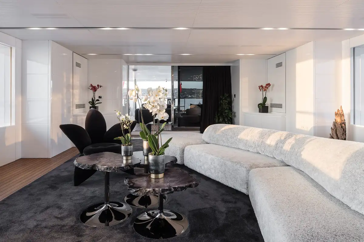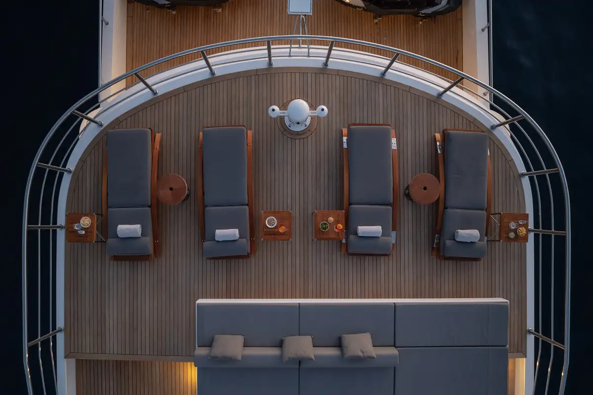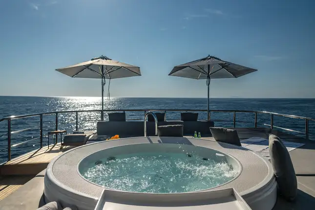 Redesigned and refitted in 2019 to a modern style, R23 offers charterers maximum space inside and out. Featuring an expansive, unique sun deck complete with a jacuzzi, shaded and exposed sun loungers and seating, as well as a bar, you can sit back and relax as you soak up the moment.