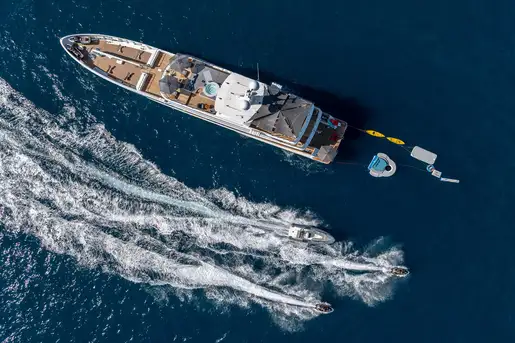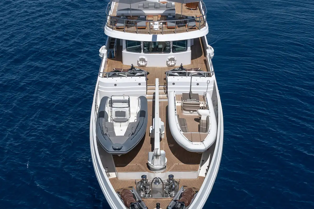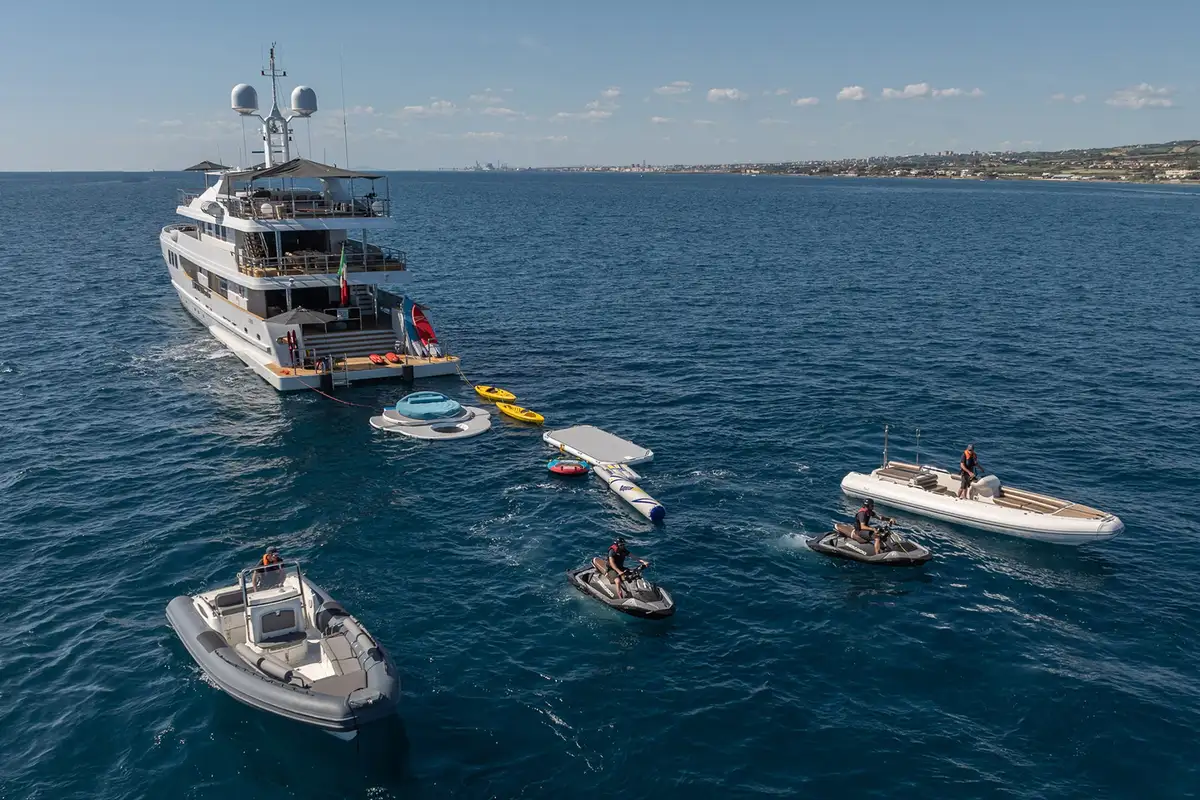 Astern you’ll find an extended swim platform; from here the crew are ready to launch the watertoys for you. Fancy that trip on the three-seater jetski? There are two, so six of you can go for a spin at once. Meanwhile, the crew can take the children out on the inflatable towable donut. For anyone who just likes to swim, you can take a dip directly from the inflatable platform!